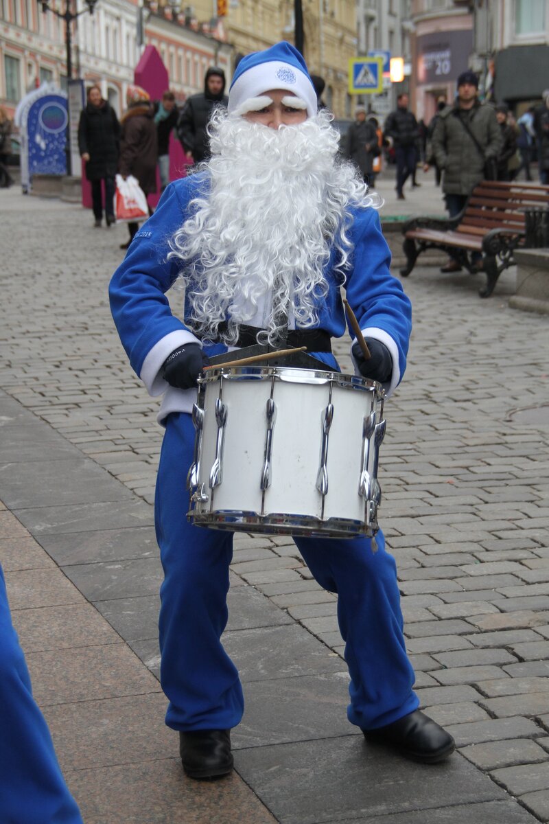 На Кузнецком мосту 21 декабря прошел перформанс Дедов Морозов. В ближайшую неделю, с 22 по 30 декабря, молодых людей в костюмах главного новогоднего волшебника можно будет встретить на улицах города. У станций метро, в бизнес-центрах и на бульварах пройдут 150 подобных акций.