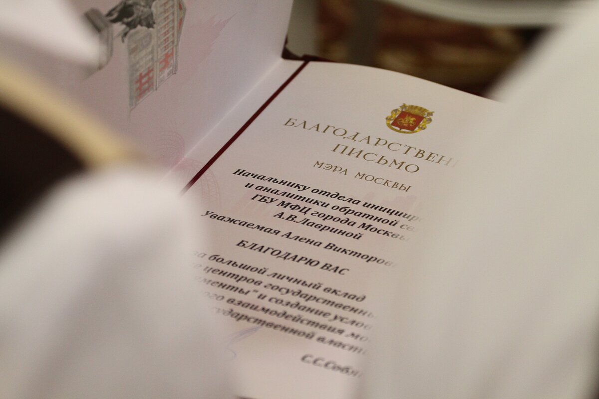 Сергей Собянин отметил заслуги наиболее отличившихся сотрудников центров "Мои документы" и вручил им благодарственные письма. Мэр также поздравил их с 6-летием столичных МФЦ.