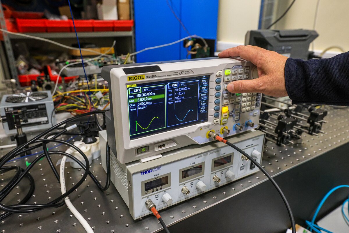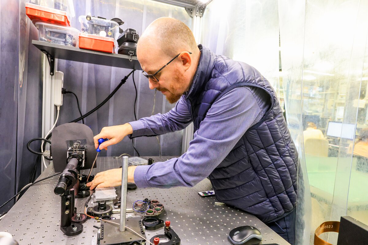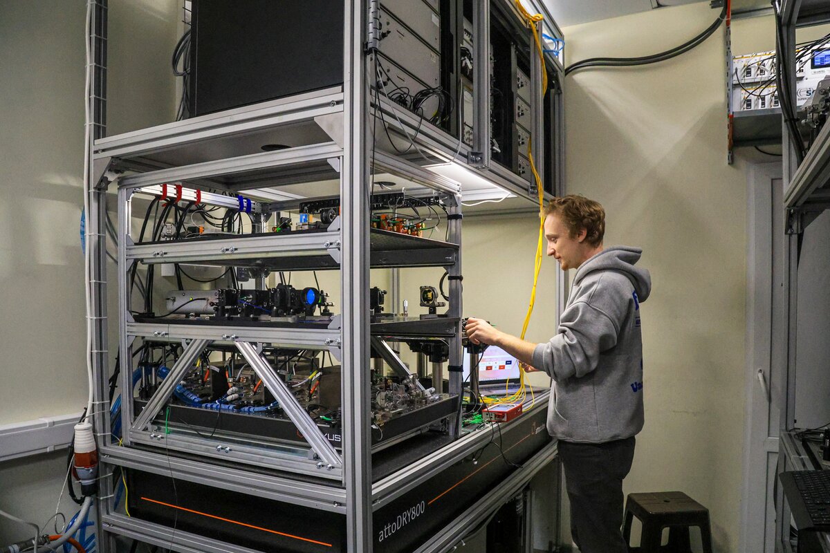 Специально для фотокорреспондента сетевого издания Москва 24 руководитель Центра квантовых технологий МГУ Сергей Кулик показал различные лаборатории центра, а также уникальные разработки: квантовый телефон и платформу для будущего квантового компьютера. Не так давно в МГУ была создана первая в России университетская квантовая сеть. Изучение и развитие квантовых коммуникаций открывает новые горизонты, где квантовая связь гарантирует защиту информации на принципиально ином уровне. Здесь охрана данных опирается на законы природы, а не на традиционные технические характеристики устройств.