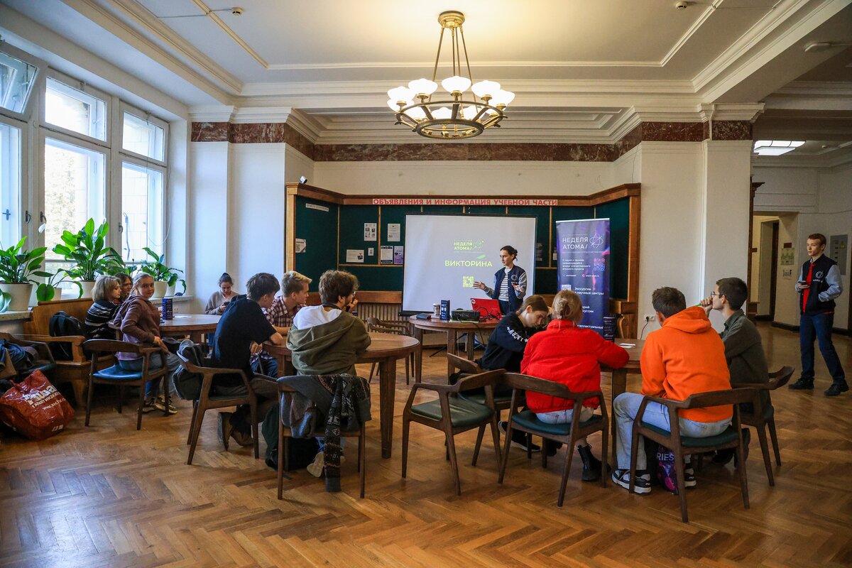 В МГУ имени М. В. Ломоносова прошел научно-просветительский марафон "Неделя атома", посвященный наукам и технике отечественного атомного проекта. В рамках этого события организаторы марафона – молодежные организации МГУ имени М. В. Ломоносова и студенты госкорпорации "Росатом" подготовили для школьников и студентов обширную и увлекательную программу, открывающую двери к новым знаниям. Мероприятия марафона показали широкое междисциплинарное значение атомного проекта для развития физики, химии, биологии, математики, информатики и других отраслей науки.