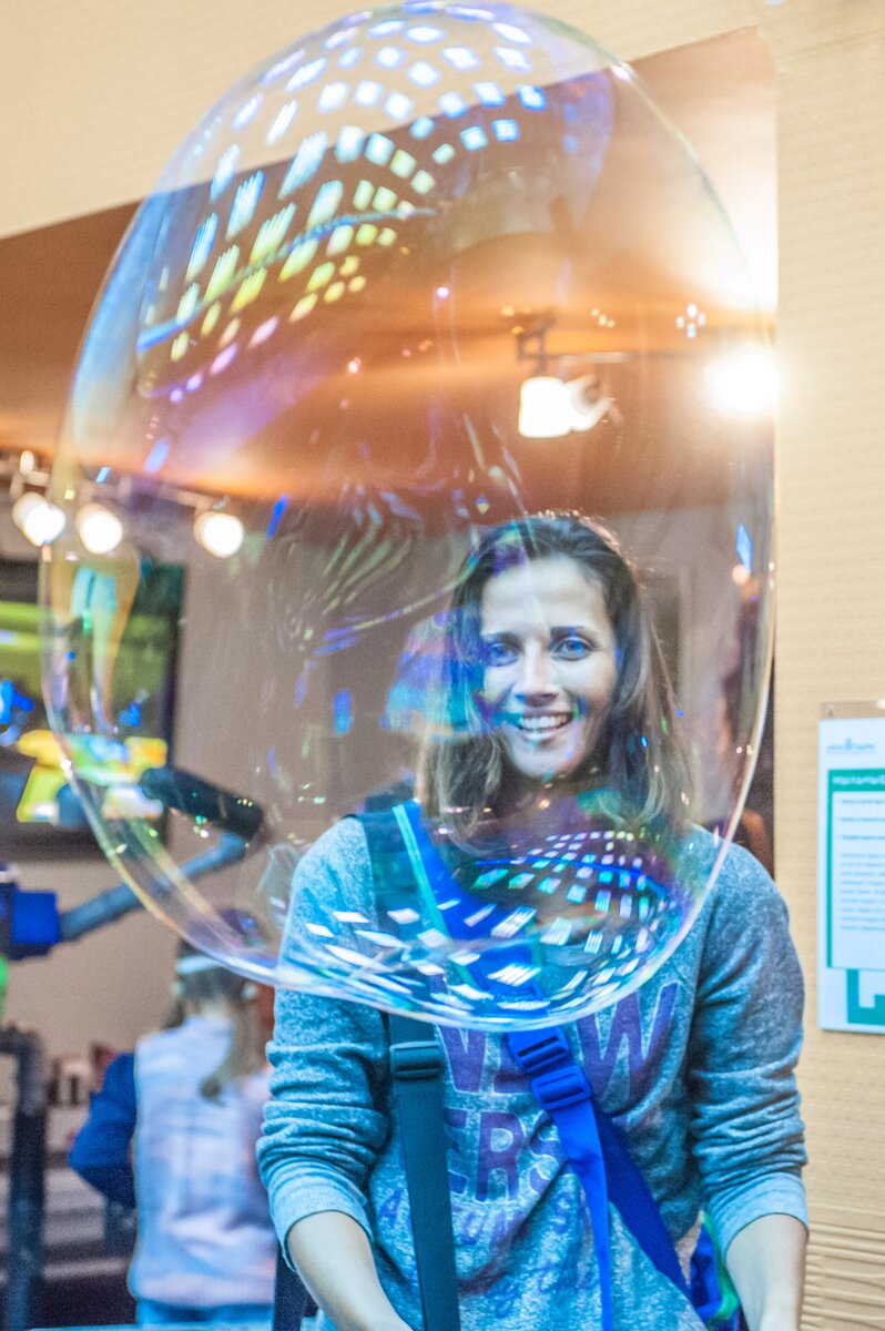 Праздник проходил в два этапа: путешествие на космическую станцию и спектакль для тех, кто не мыслит свою жизнь без космонавтики. Для них часть интерактивного музея стала театральным залом. "Творческое объединение 9" показало юным исследователям свой спектакль "Космос, или На край Вселенной".