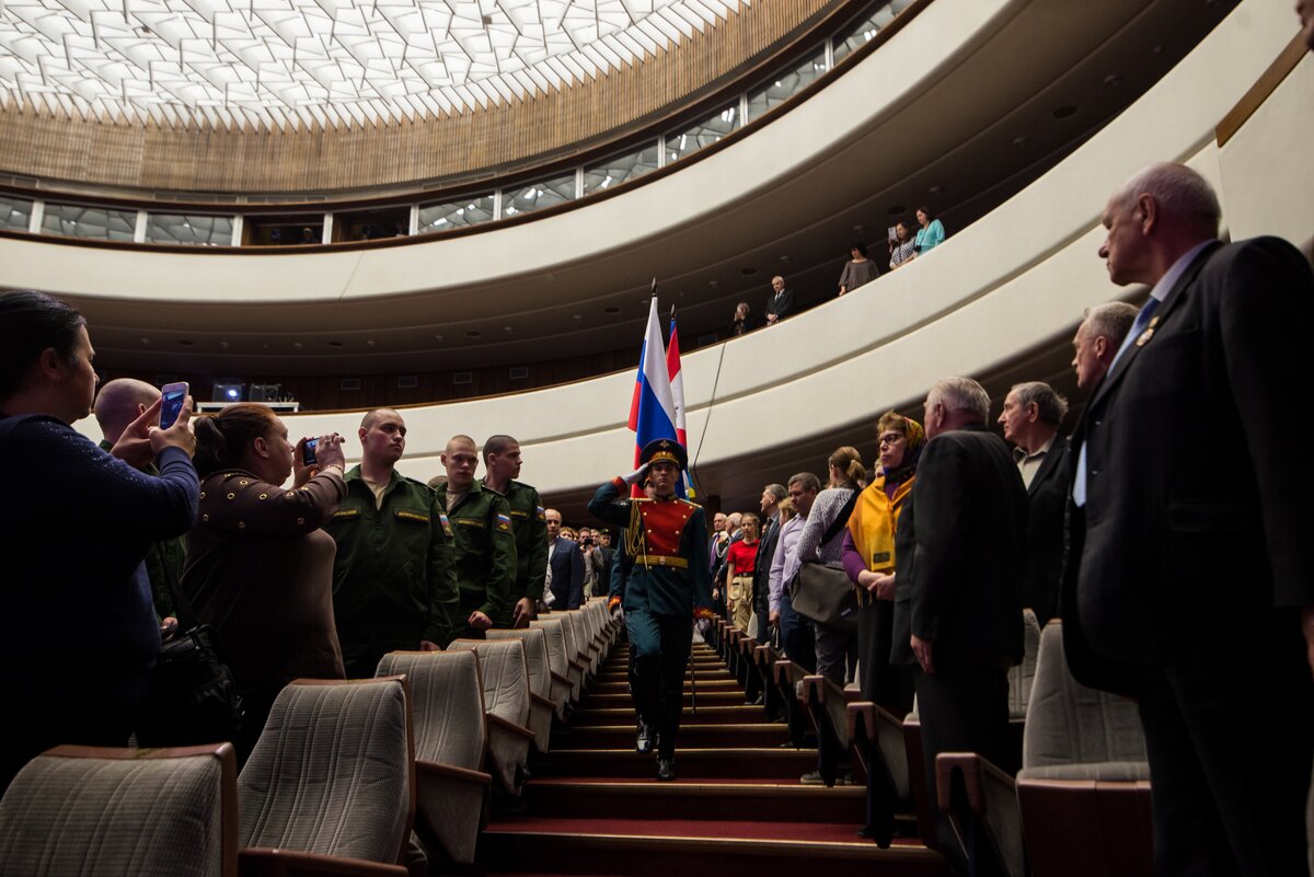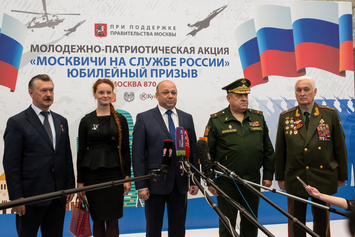 17 мая в Большом зале правительства Москвы прошла традиционная молодежно-патриотическая акция "Москвичи на службе России", посвященная весеннему призыву в армию. Главными участниками мероприятия стали москвичи-призывники, которые в этот же день отбыли в воинские части к месту прохождения военной службы.