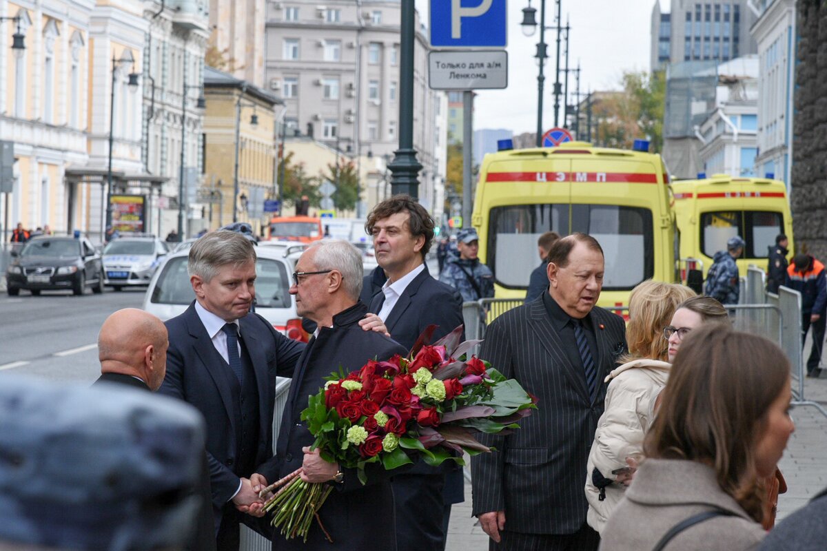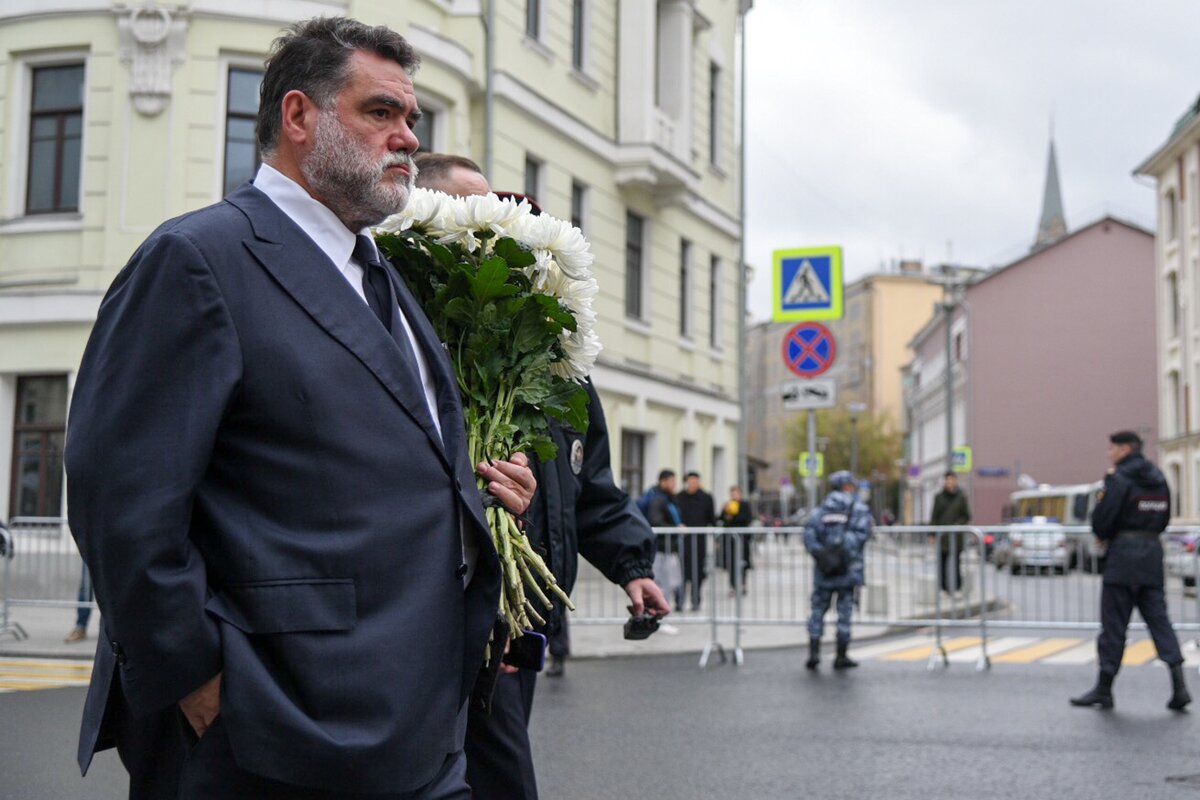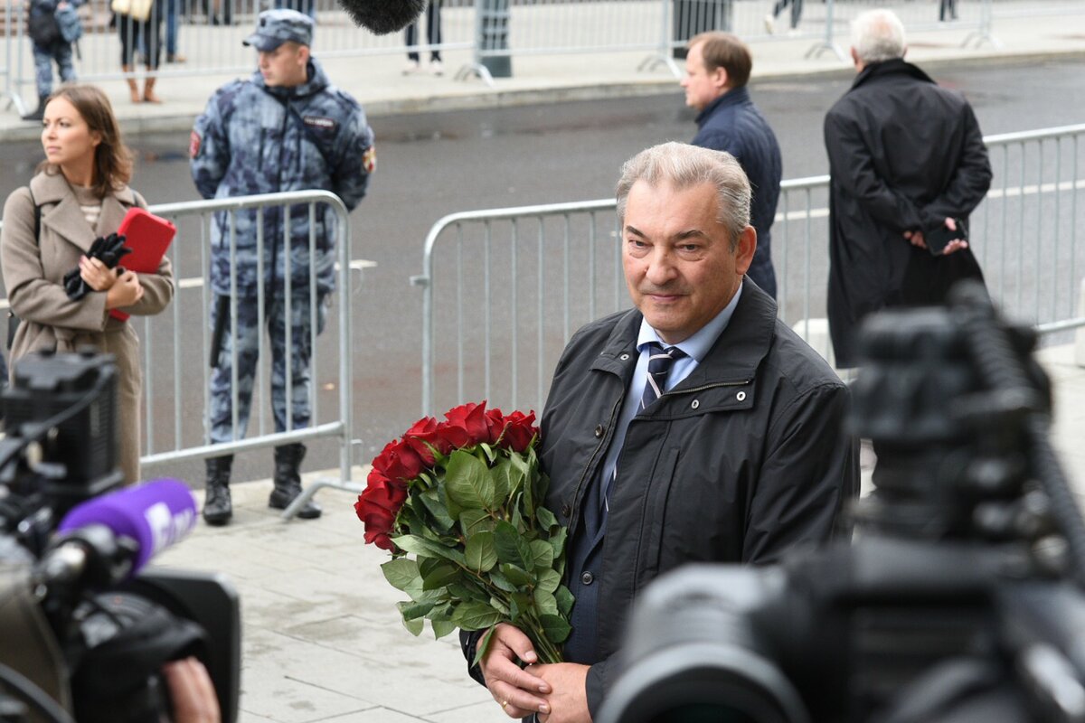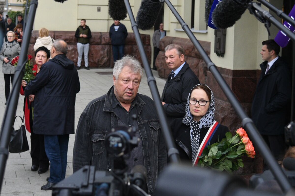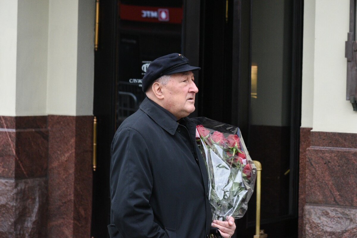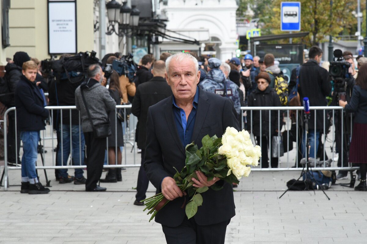 Актер Сергей Гармаш появился на церемонии прощания с Захаровым с букетом белых роз