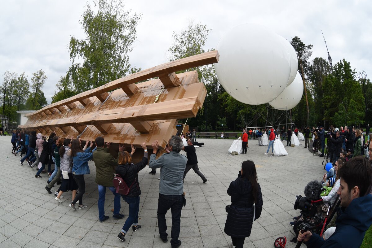 ОбществоПарящий мост на ВДНХ: жители Москвы запустили в небо конструкцию, собранную своими руками