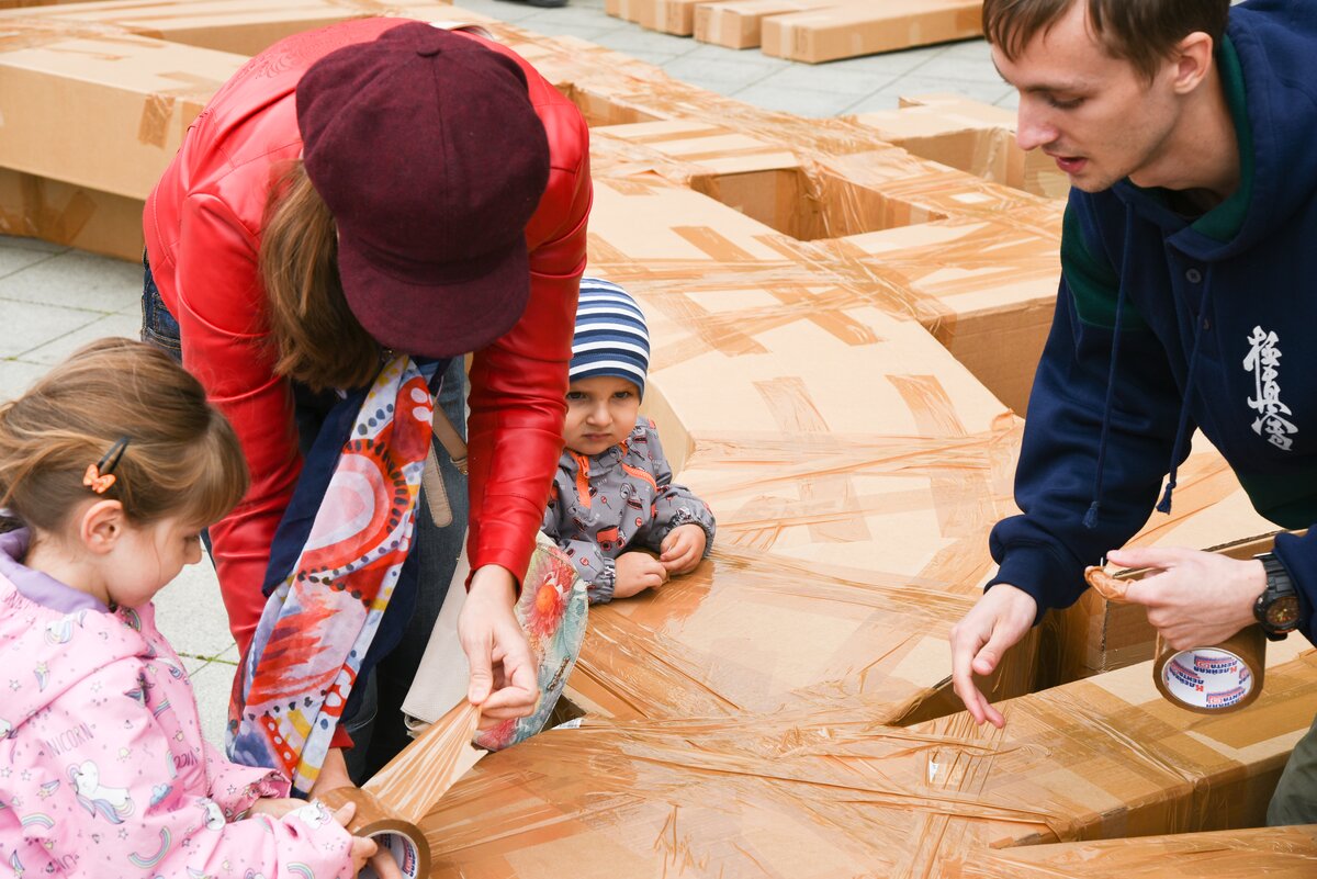 От первой коробки до запуска над водой – организаторам потребовалось пять дней, чтобы воплотить в жизнь свою задумку. И на каждом этапе к ним могли присоединиться все желающие. В день запуска на финальную сборку конструкции записались порядка ста человек. К участию допускались даже самые молодые жители столицы. 6/16От первой коробки до запуска над водой – организаторам потребовалось пять дней, чтобы воплотить в жизнь свою задумку. И на каждом этапе к ним могли присоединиться все желающие. В день запуска на финальную сборку конструкции записались порядка ста человек. К участию допускались даже самые молодые жители столицы.