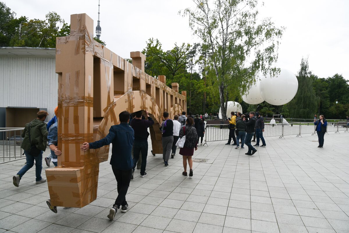 Мост провисит в парке "Останкино" до 4 августа. В этот день любой желающий сможет принять участие в его разборке. По словам Гросстета, с помощью посетителей парка коробки спрессуют, а после отправят на переработку. 16/16Мост провисит в парке "Останкино" до 4 августа. В этот день любой желающий сможет принять участие в его разборке. По словам Гросстета, с помощью посетителей парка коробки спрессуют, а после отправят на переработку.