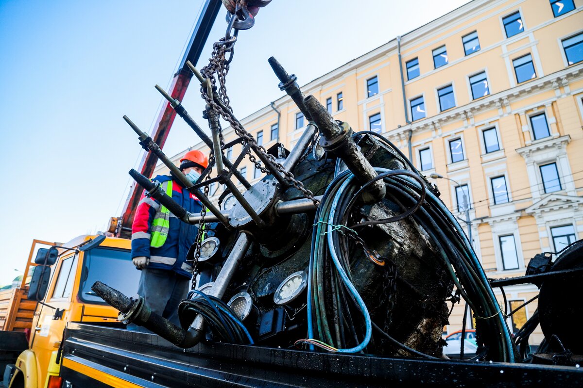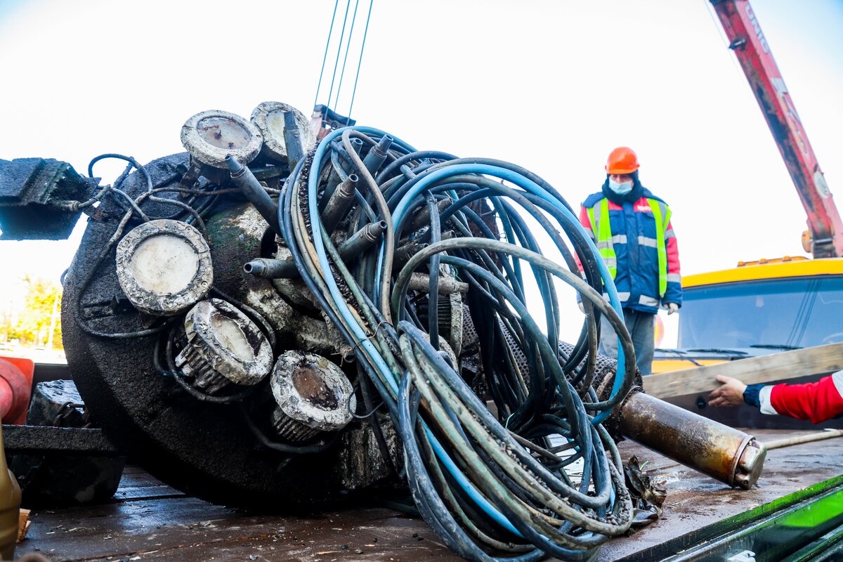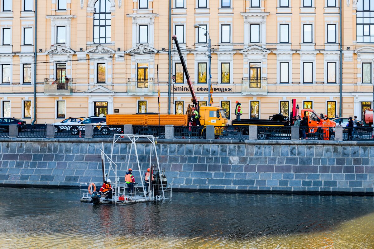 Чтобы демонтировать конструкции, специалистам потребуется специализированный самоходный понтон с краном.