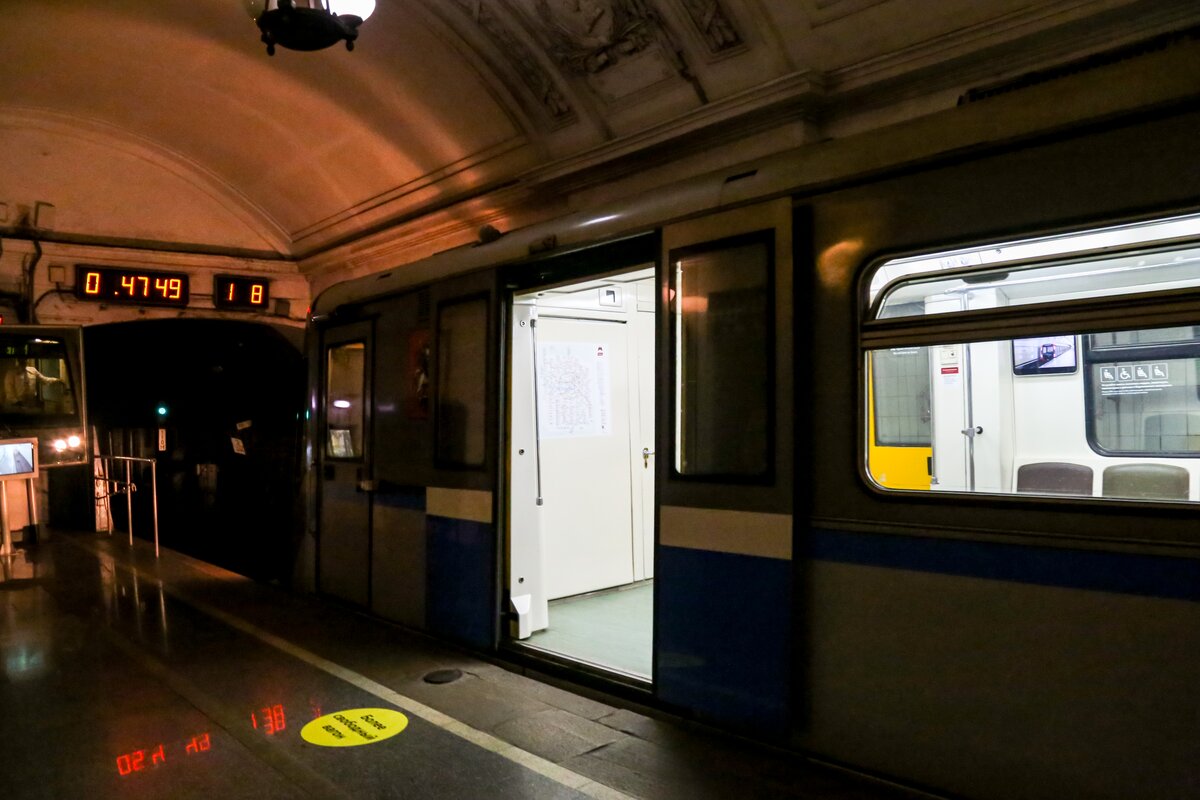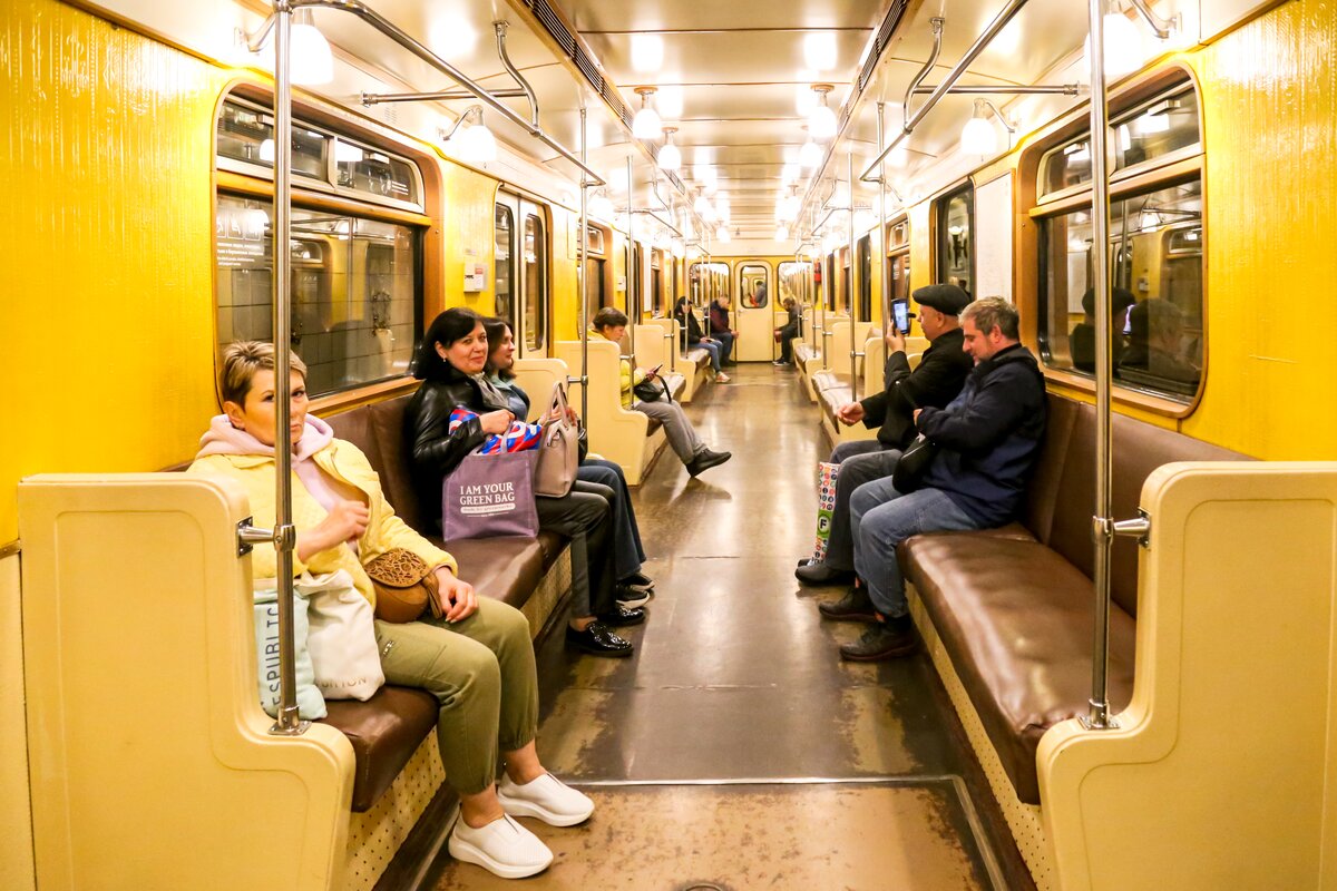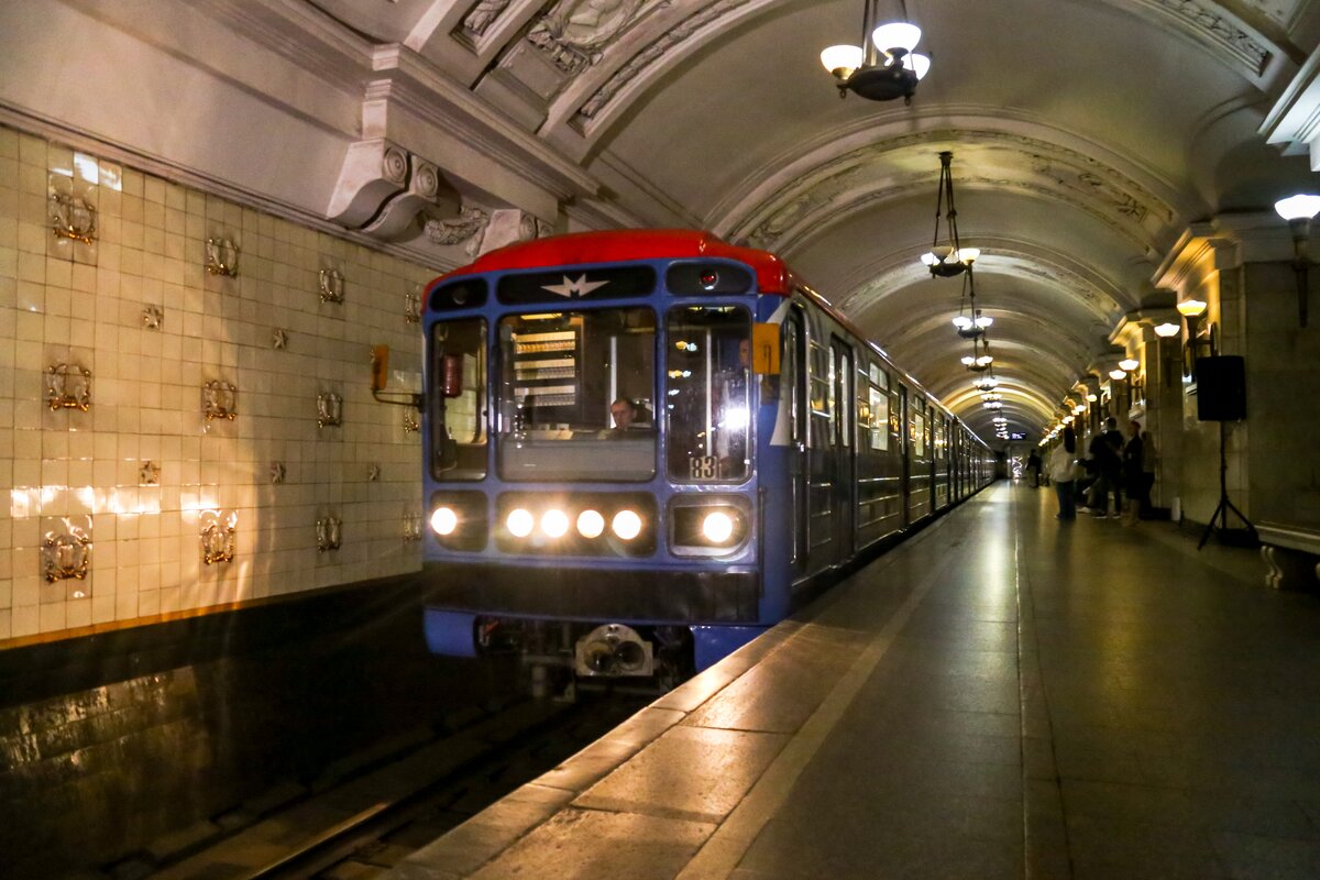 Пять исторических вагонов показали и на станции "Партизанская". Пассажирам представили составы, ходившие в метро с 1940-х годов по настоящее время.