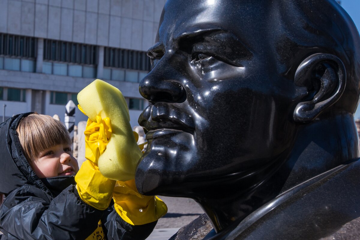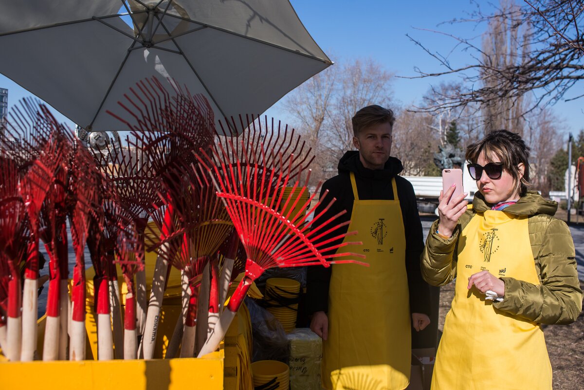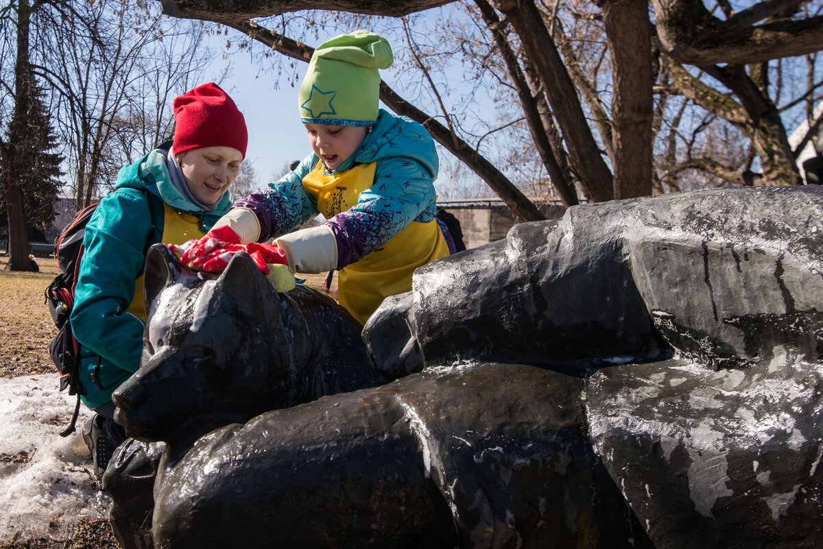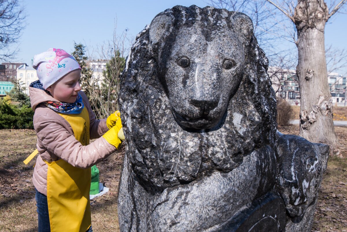 В субботу, 14 апреля, в Музеоне прошел ежегодный субботник. Как и в прошлом году, акцию "Головомойка" провело Общество желтых ведерок – открытый клуб борцов за чистоту искусства, существующий на базе Парка Горького. Миссия Общества – расчистить Парк от зимней серости и освободить дорогу весне. Проект подготовлен совместно с Мосгорпарком.