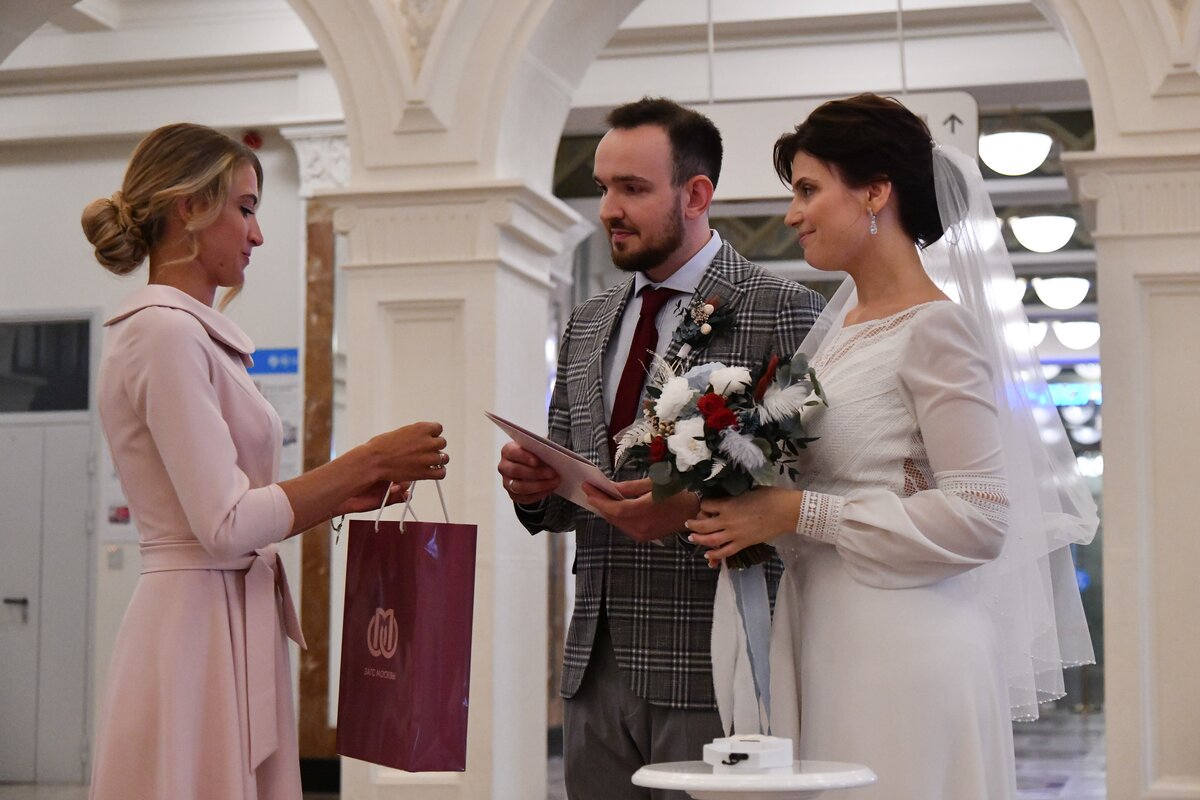 Торжественные регистрации бракосочетания впервые прошли на Северном речном вокзале в Москве. В стенах отреставрированного здания заключили брак три пары молодоженов. В ближайшее время еще около 20 пар поженятся на площадках транспортного комплекса.