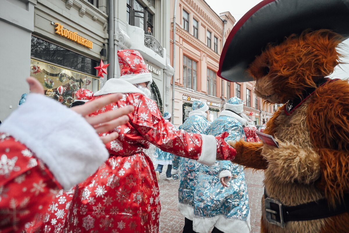 Сотни Дедов Морозов и Снегурочек прошли по Бульварному кольцу в сопровождении музыкантов. Парад стартовал на пересечении Цветного и Петровского бульваров, а финишной точкой стала Смоленская площадь.