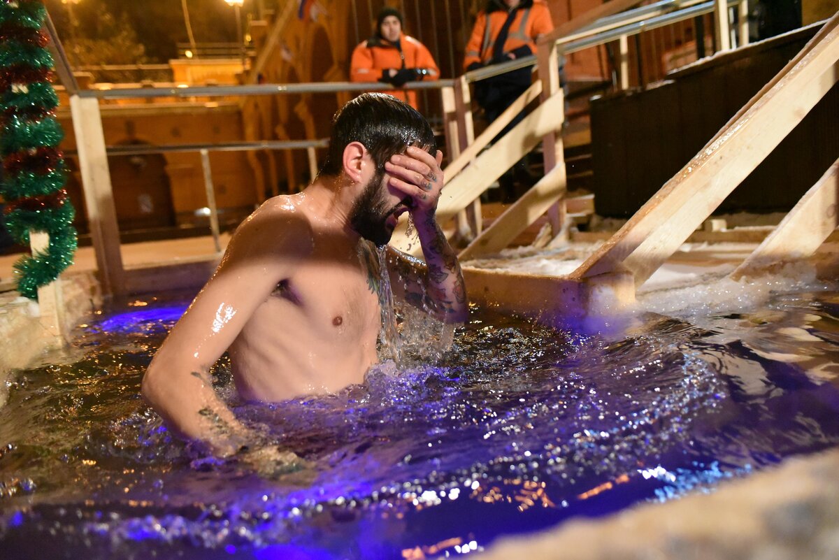 Вода в проруби после освящения становится целебной, поэтому православные умываются ею