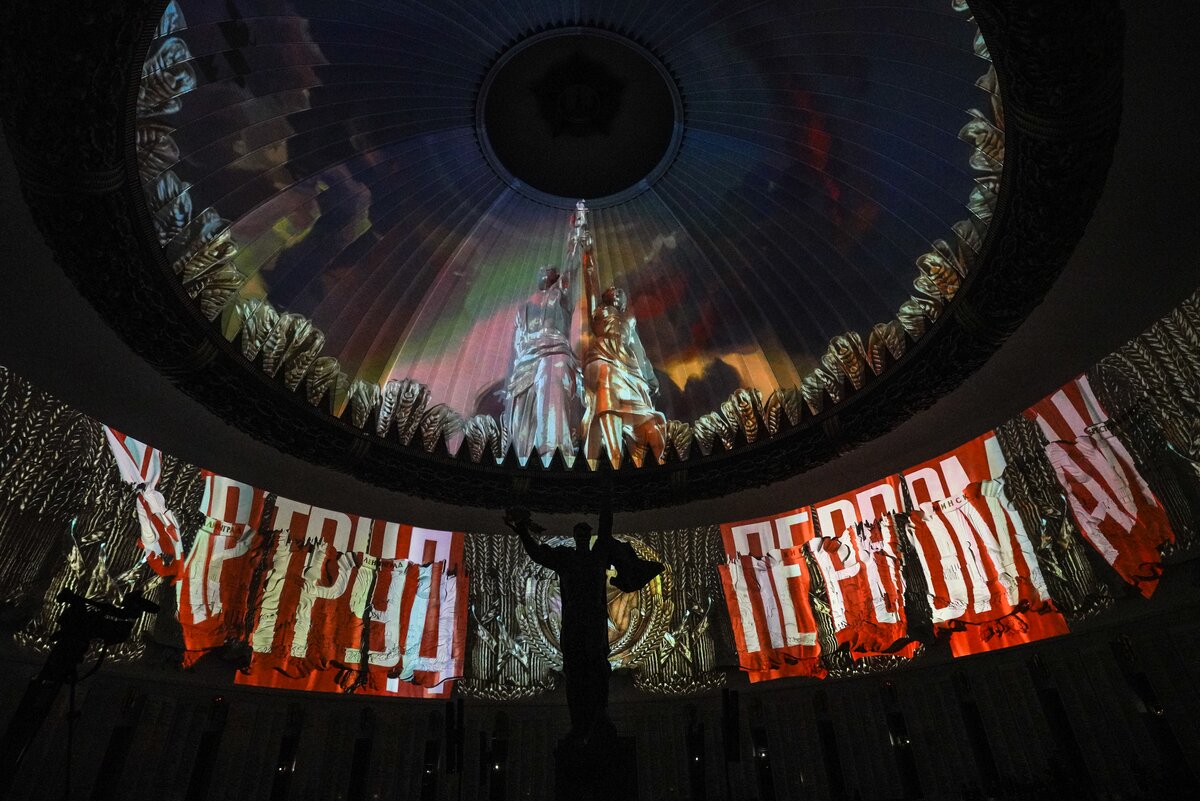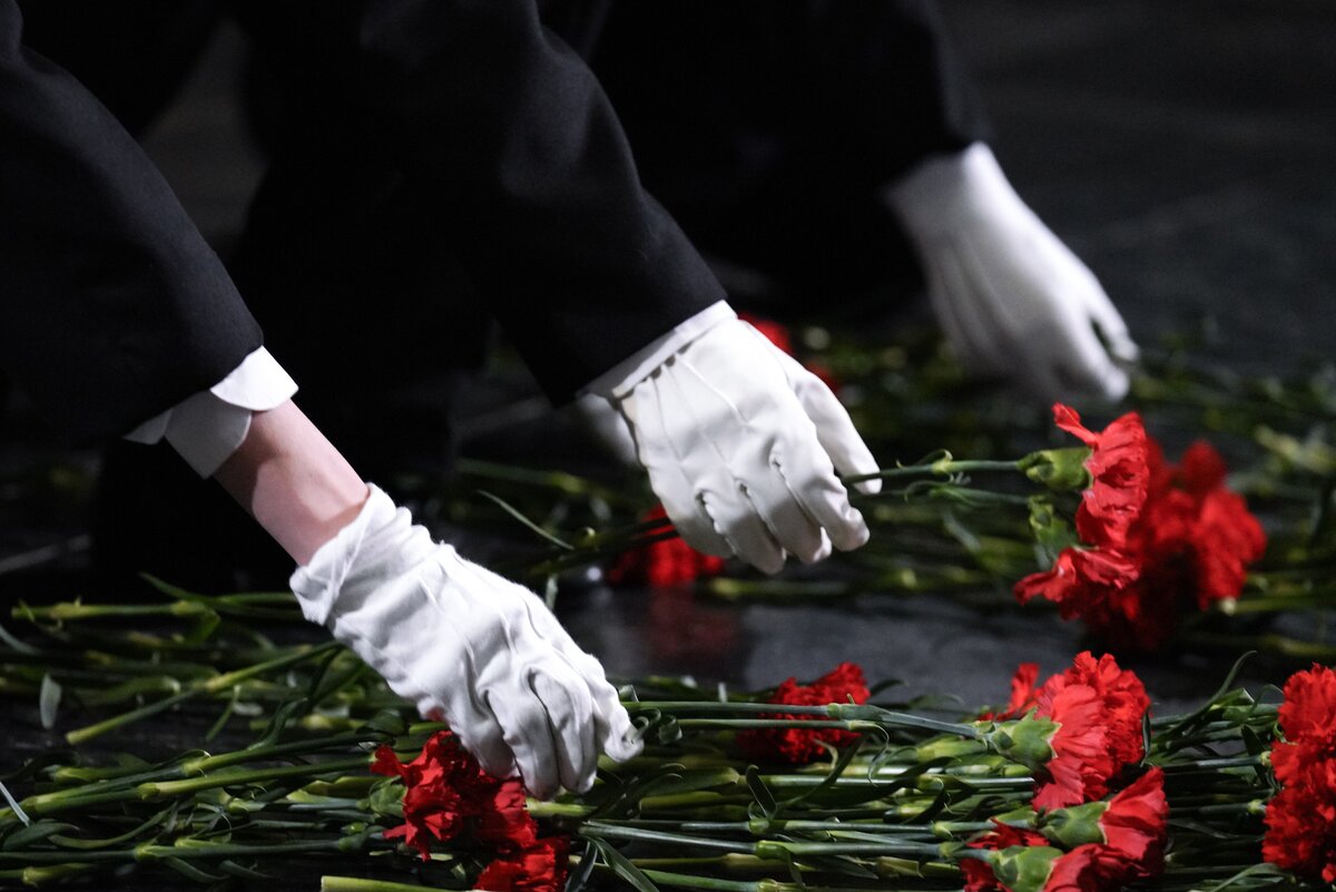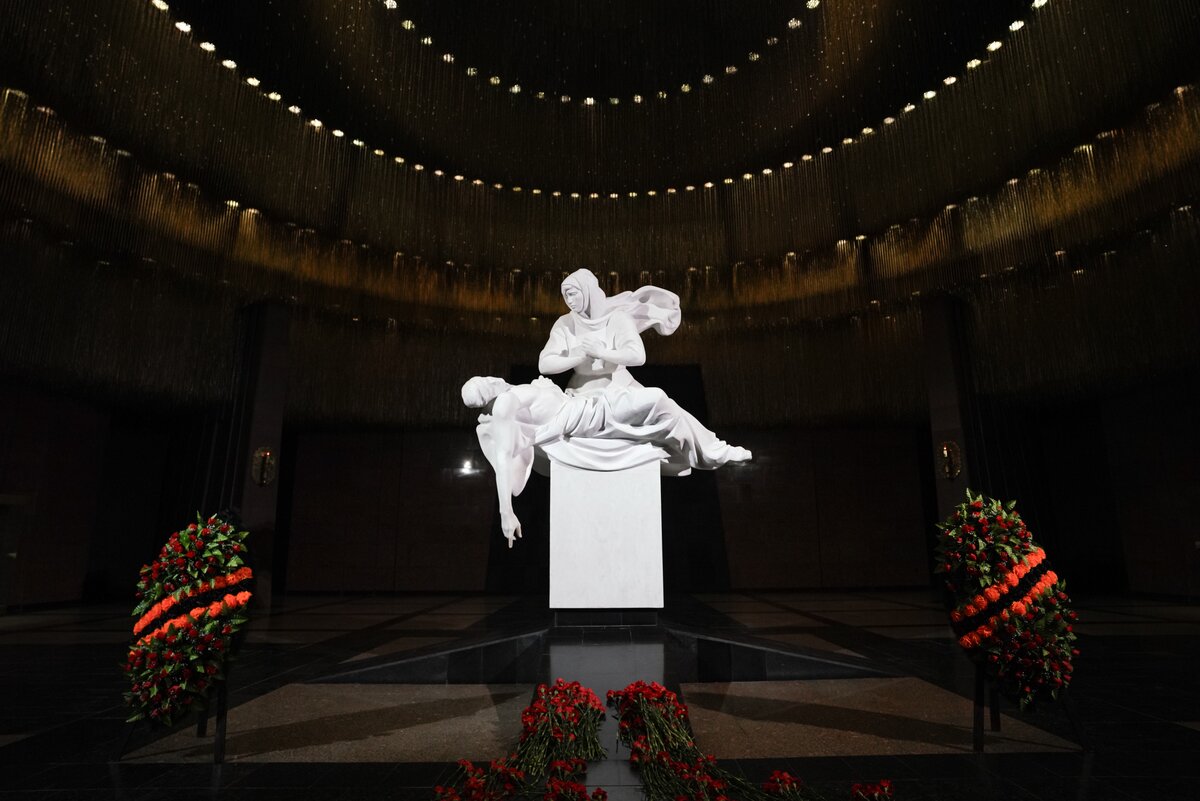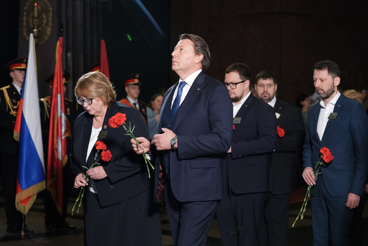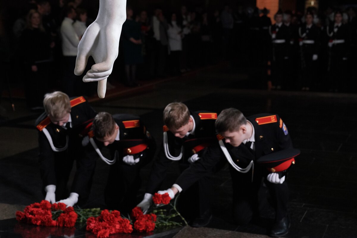 Торжественная церемония прошла в Зале Славы. Перед началом ребята, педагоги и почетные гости возложили цветы к монументу "Скорбь" в Зале Памяти и Скорби и почтили минутой молчания погибших в годы Великой Отечественной войны.