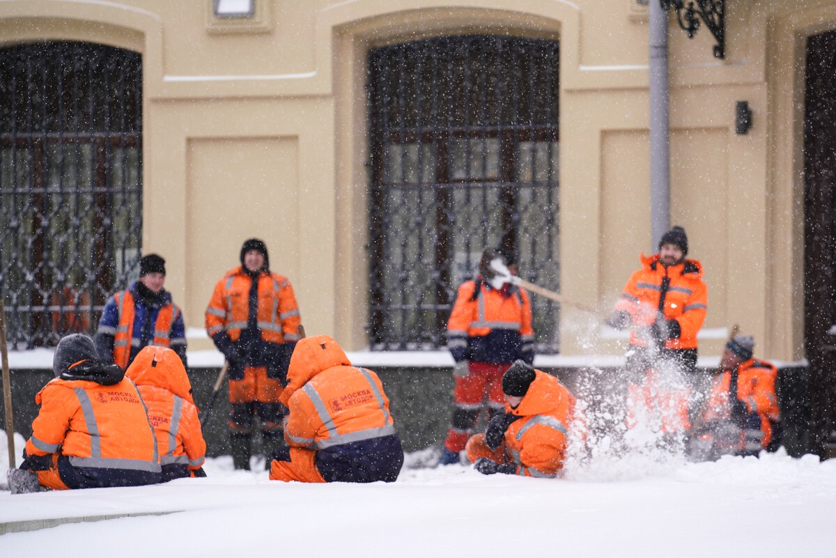 Коммунальные службы Москвы перешли на работу в усиленном режиме. Ранним утром провели сплошное прометание проезжей части и тротуаров с последующей противогололедной обработкой. Цикл уборки повторялся по мере выпадения осадков.