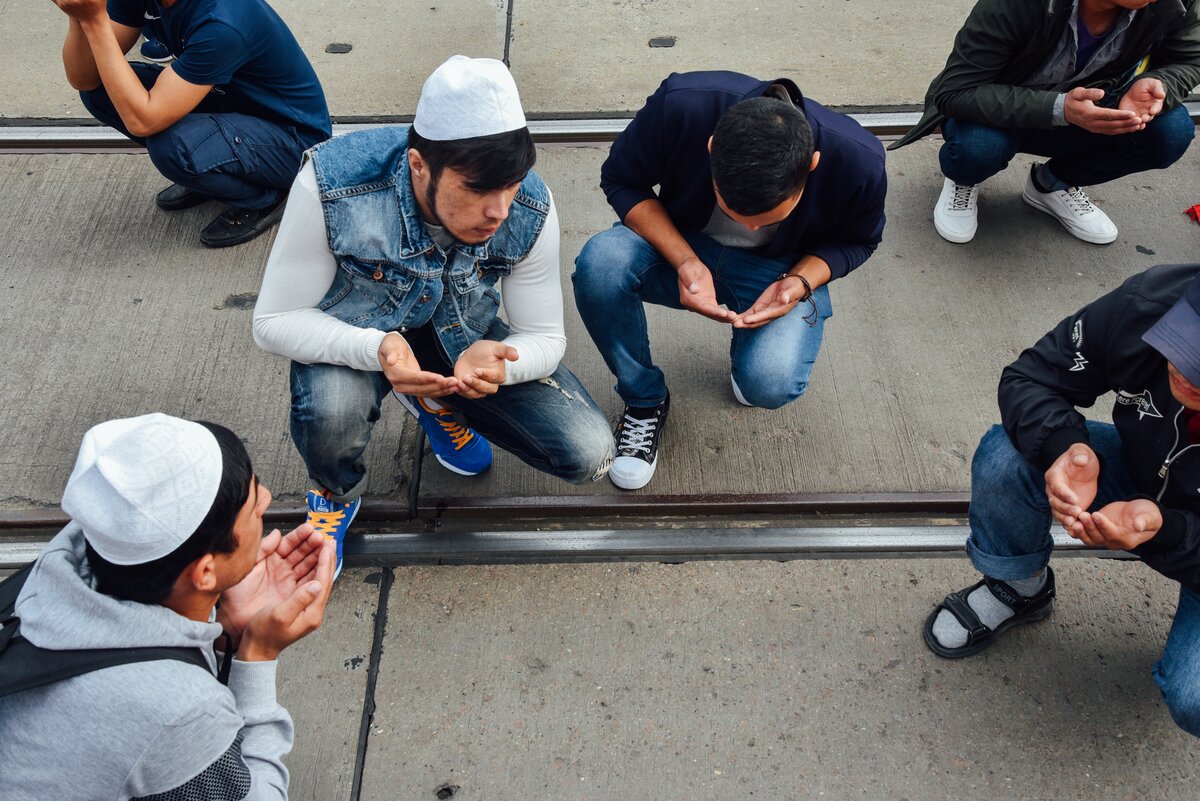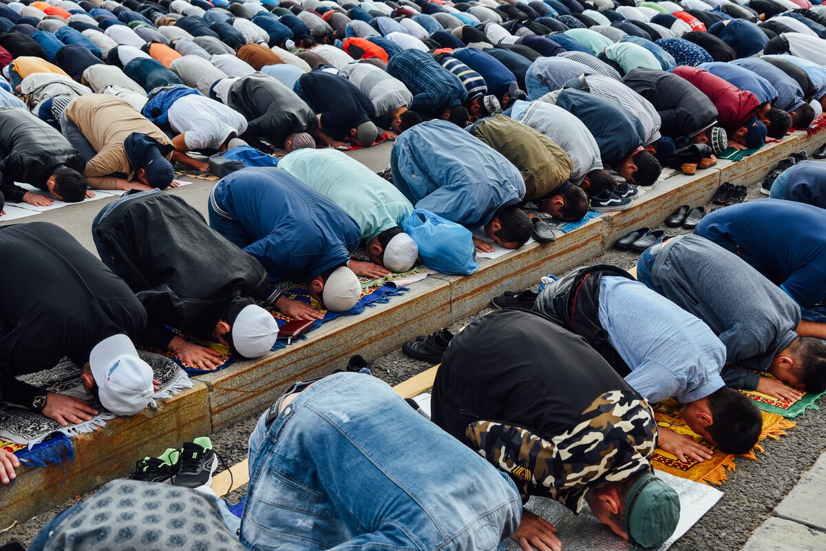 Тысячи людей синхронно преклоняют головы перед Всевышним