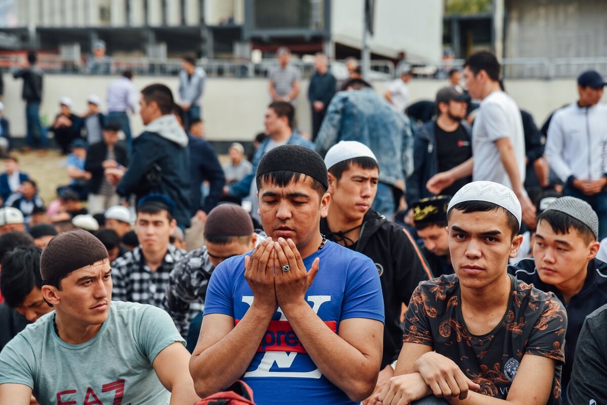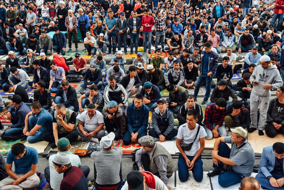 На праздничную молитву и намаз собрались верующие, чтобы вознести хвалу своему Всевышнему
