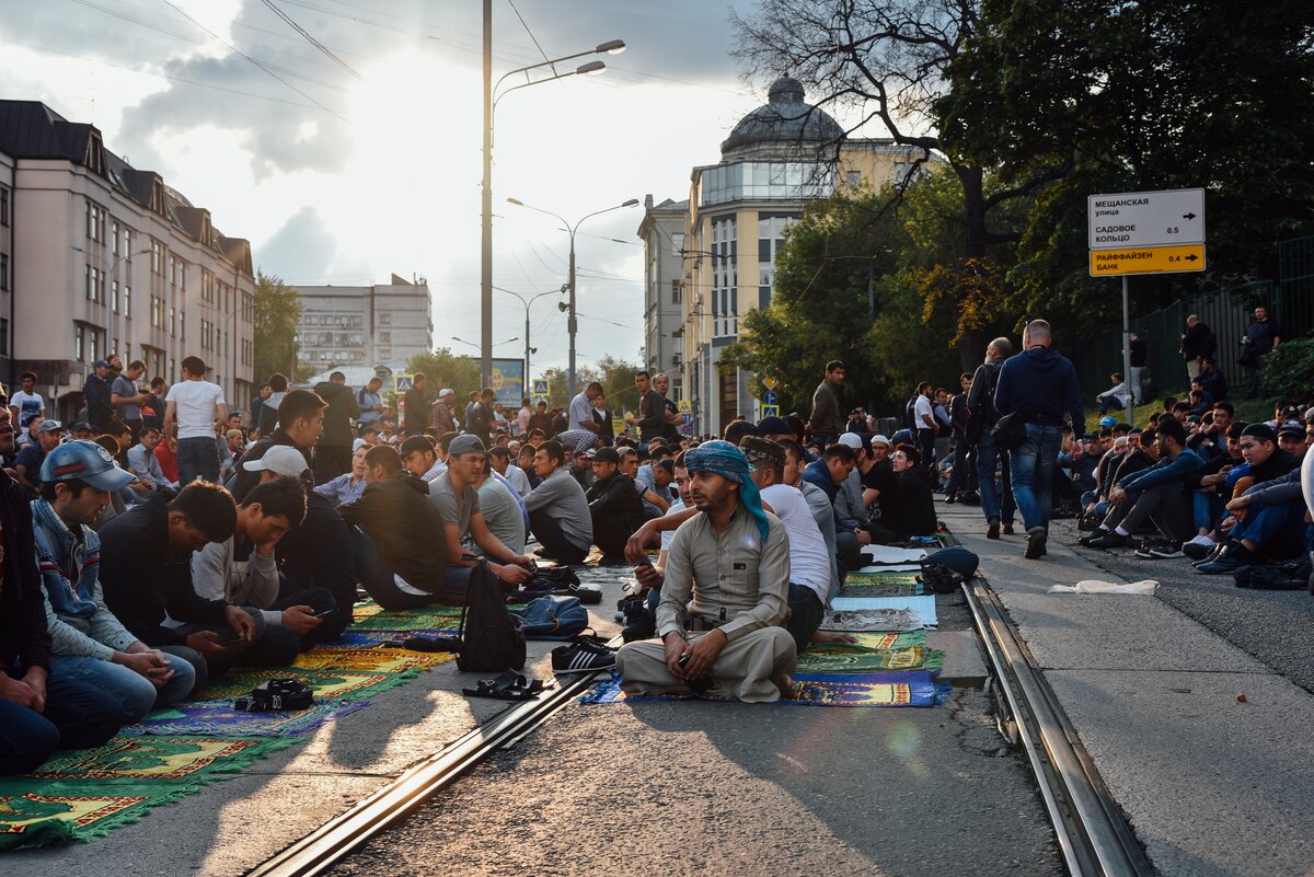 Московская соборная мечеть на проспекте Мира стала центром празднования главного мусульманского праздника Курбан-байрам 1/16Московская соборная мечеть на проспекте Мира стала центром празднования главного мусульманского праздника Курбан-байрам