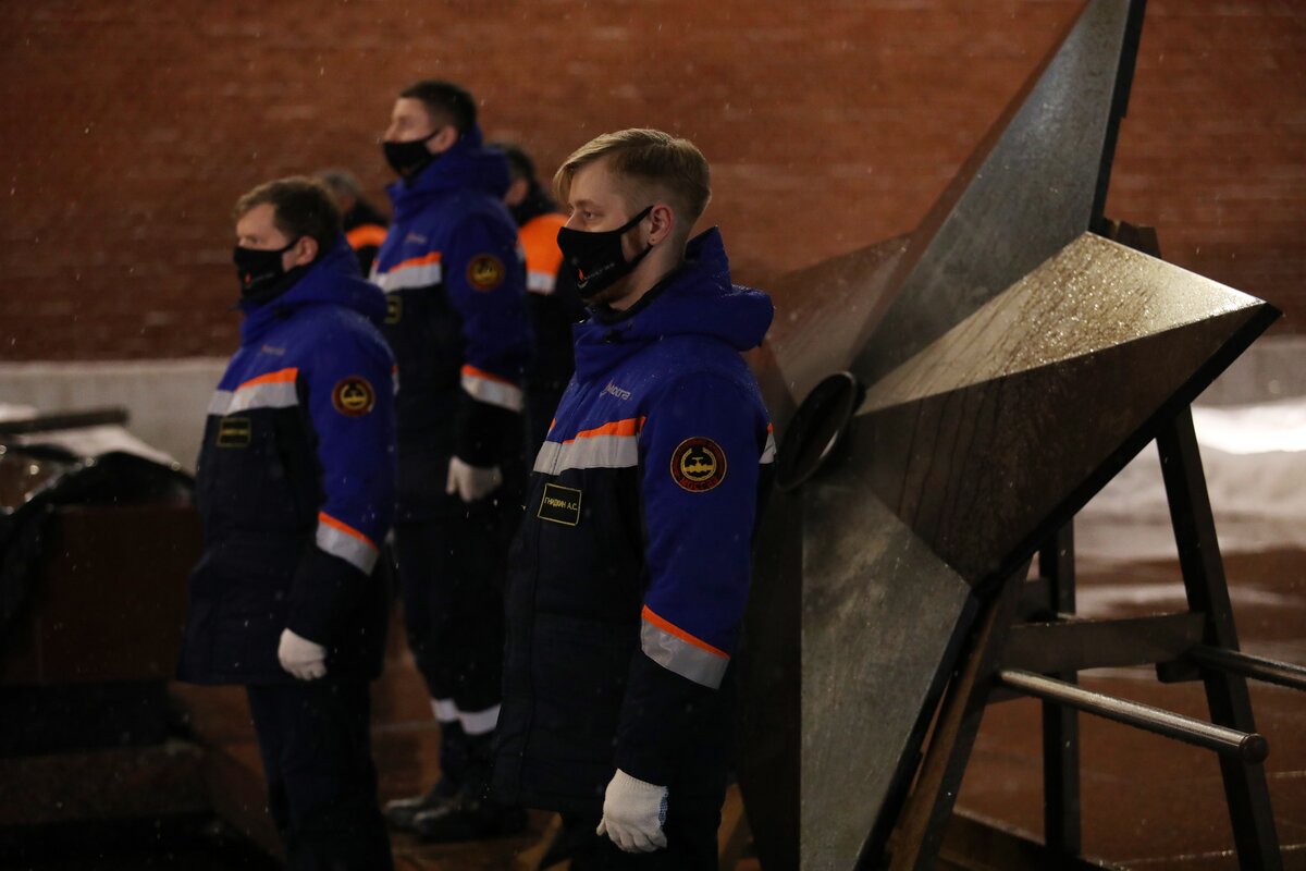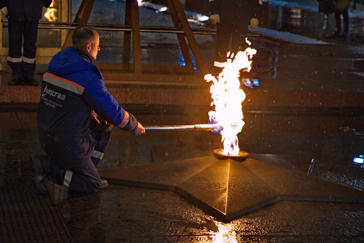 Уже 55 лет МОСГАЗ является хранителем священного пламени, а этот год – юбилейный. Перед началом технического обслуживания пламя Вечного огня с помощью специального факела переносят на временную горелку, благодаря чему удается обеспечить непрерывное горение пламени. Важно отметить, что для переноса используется копия исторического факела, который применялся при первом розжиге Вечного огня в 1967 году. После этого специалисты снимают мемориальную звезду и проверяют работоспособность всех трех запальников.