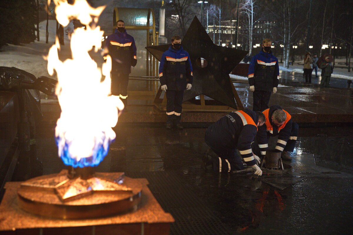 Специалисты МОСГАЗа в составе Комплекса городского хозяйства и Департамента ЖКХ города Москвы провели традиционную церемонию профилактики горелки Вечного огня. Она представляет собой уникальную конструкцию, которая рассчитана на всепогодные условия: снег, дождь и ураганные порывы ветра. Специалисты ежедневно осматривают мемориал, а также раз в месяц проводят его техническое обслуживание. Кроме того, дополнительное техобслуживание проводится перед Днем защитника Отечества и Днем Победы.