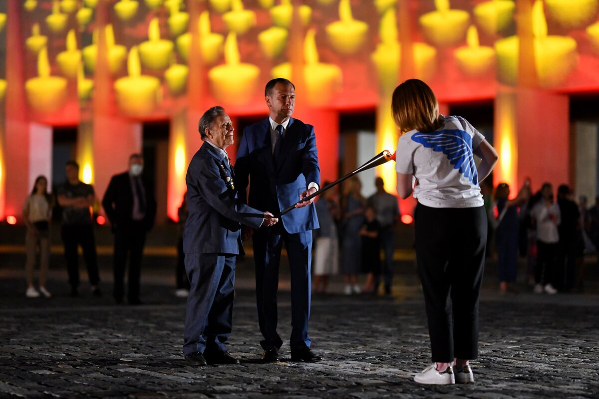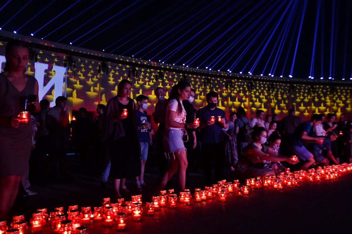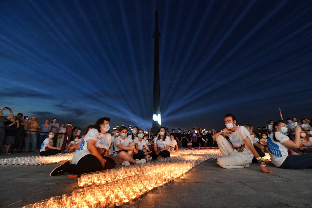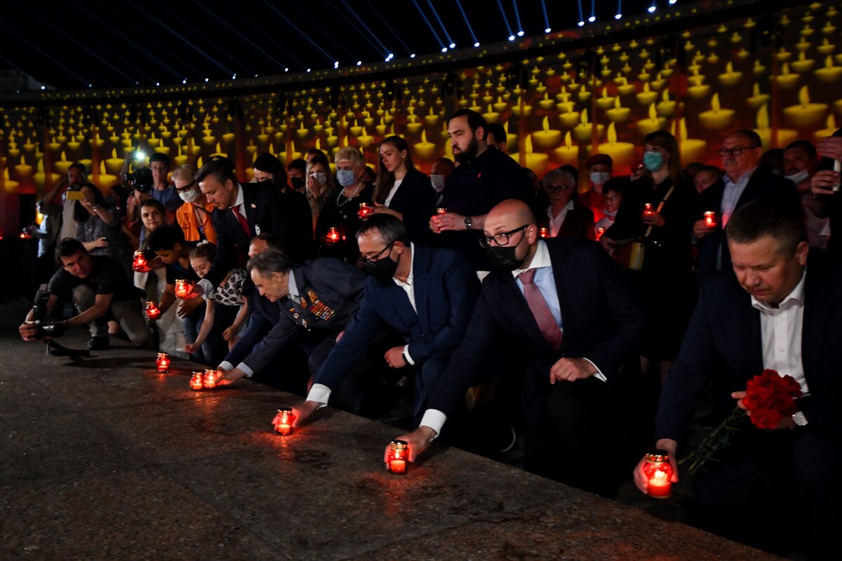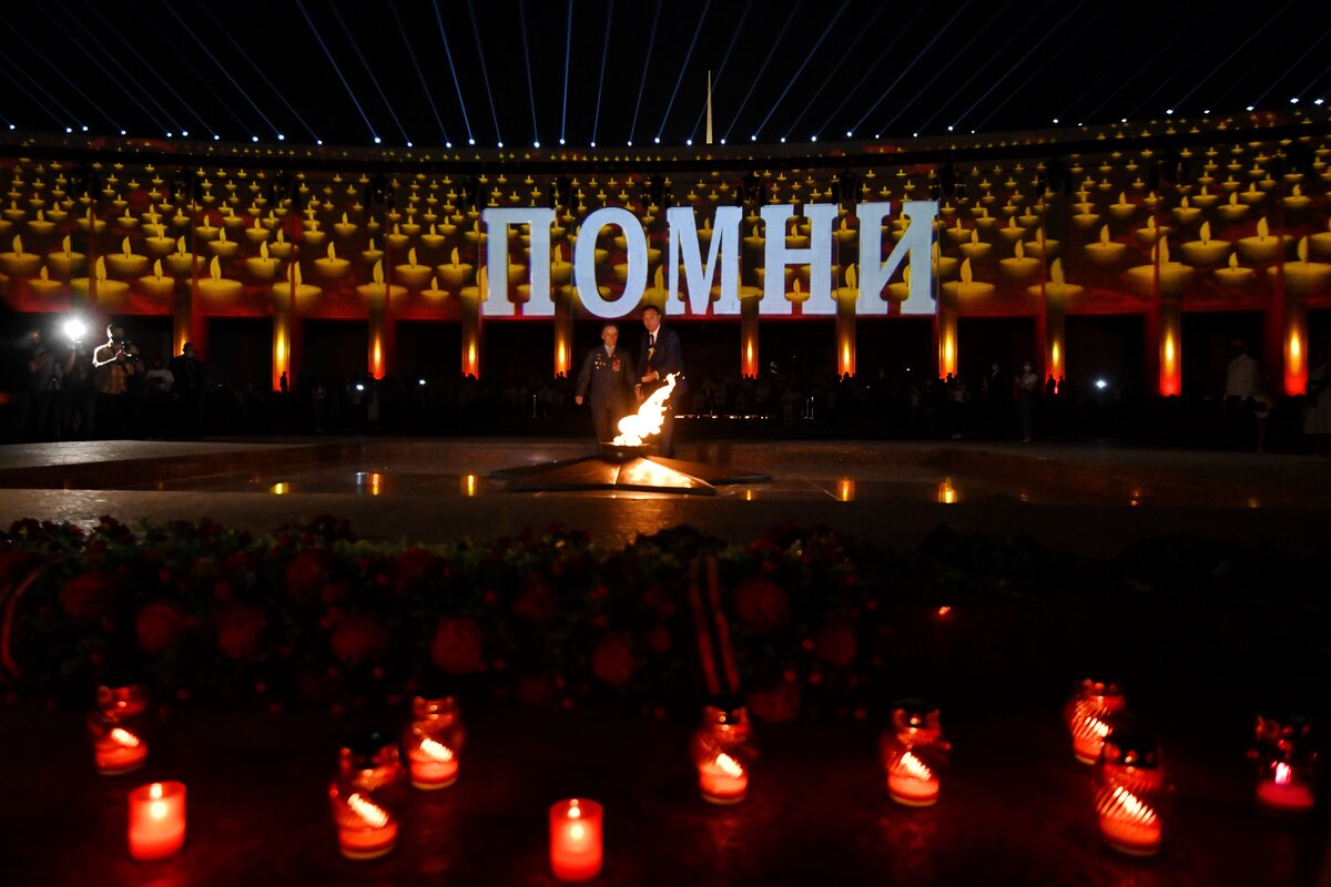 В ночь с 21 на 22 июня на площади перед Музеем Победы прошла ежегодная Всероссийская мемориальная акция "Свеча памяти". Она посвящена Дню памяти и скорби и 80-летию начала Великой Отечественной войны.