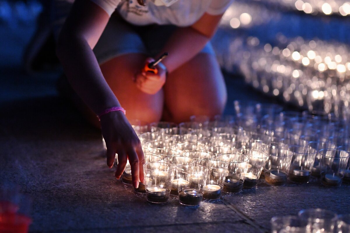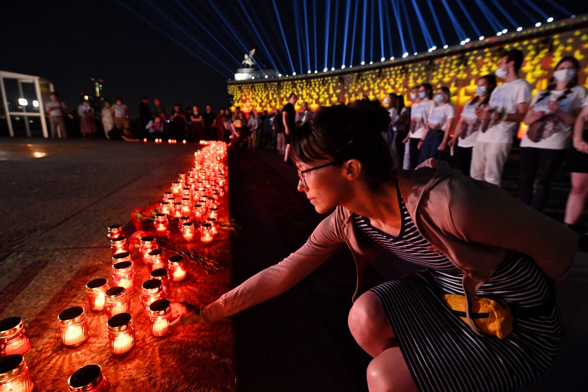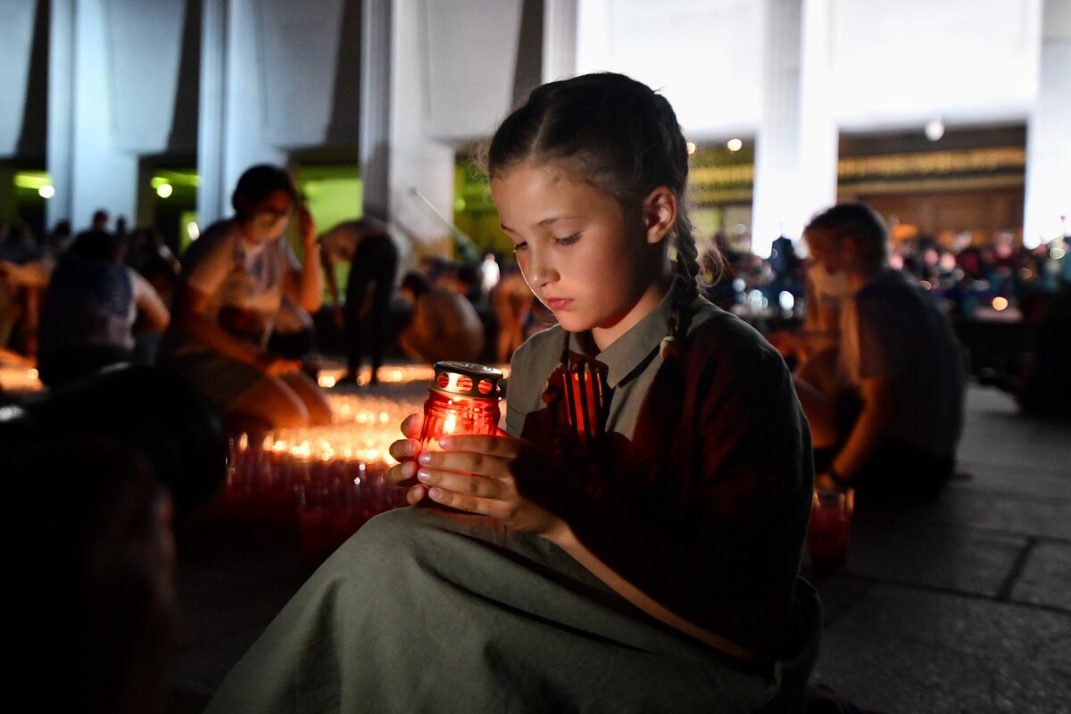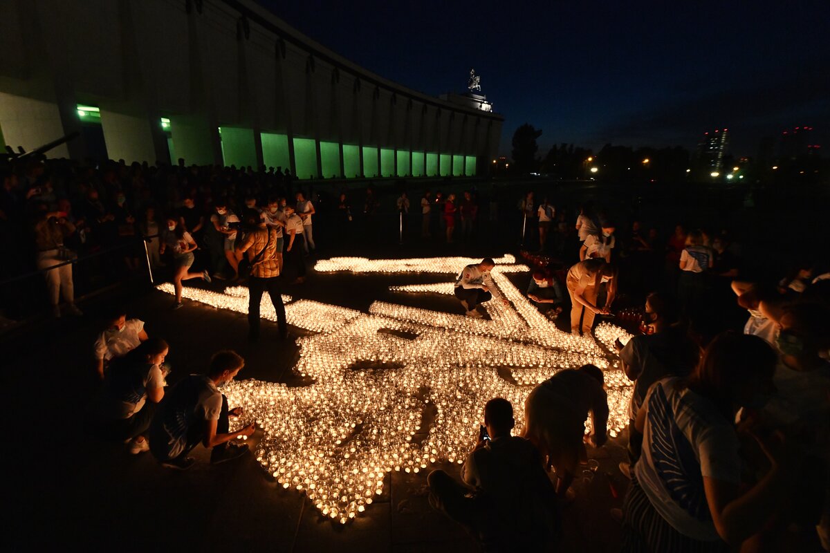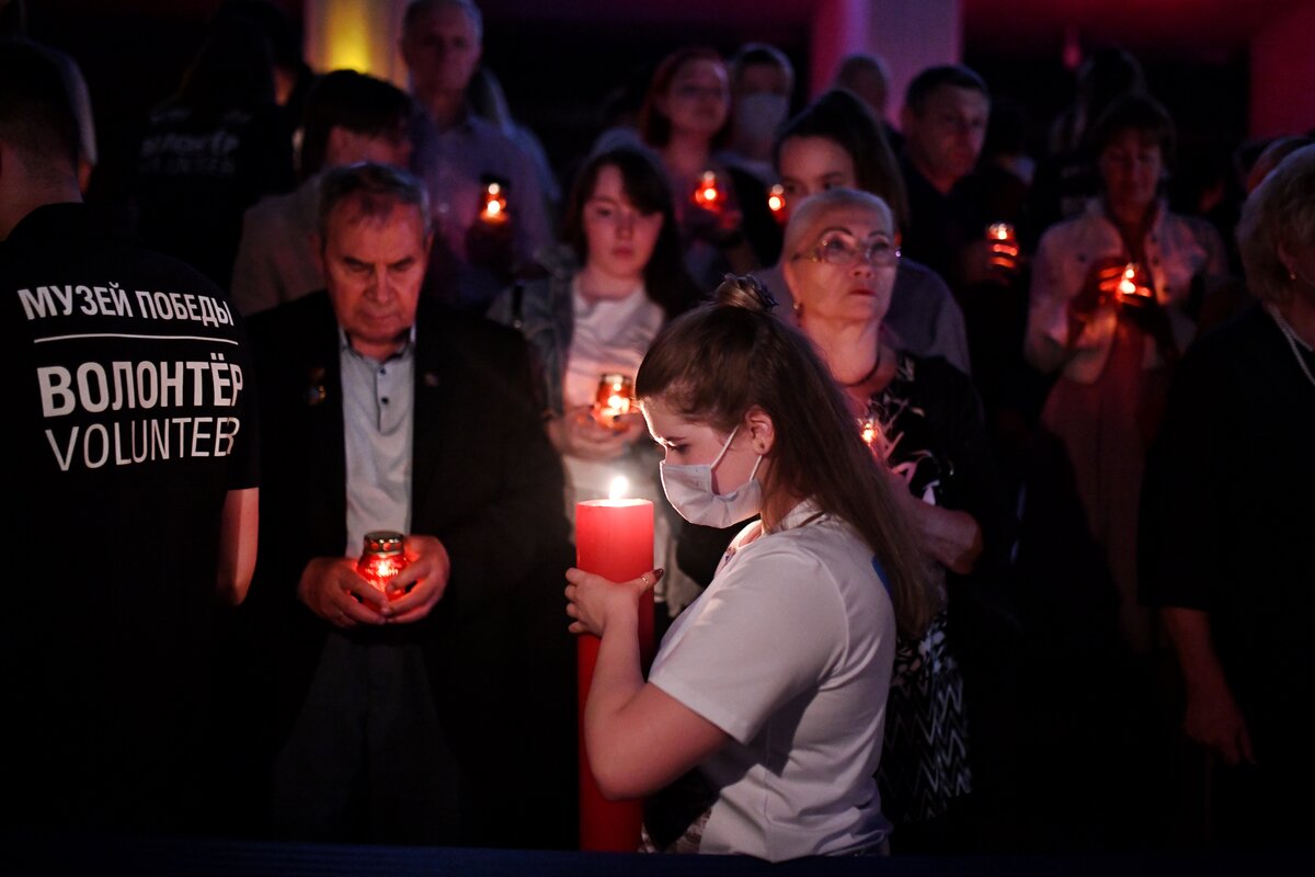 В ночь с 21 на 22 июня на площади перед Музеем Победы прошла ежегодная Всероссийская мемориальная акция "Свеча памяти". Она посвящена Дню памяти и скорби и 80-летию начала Великой Отечественной войны.