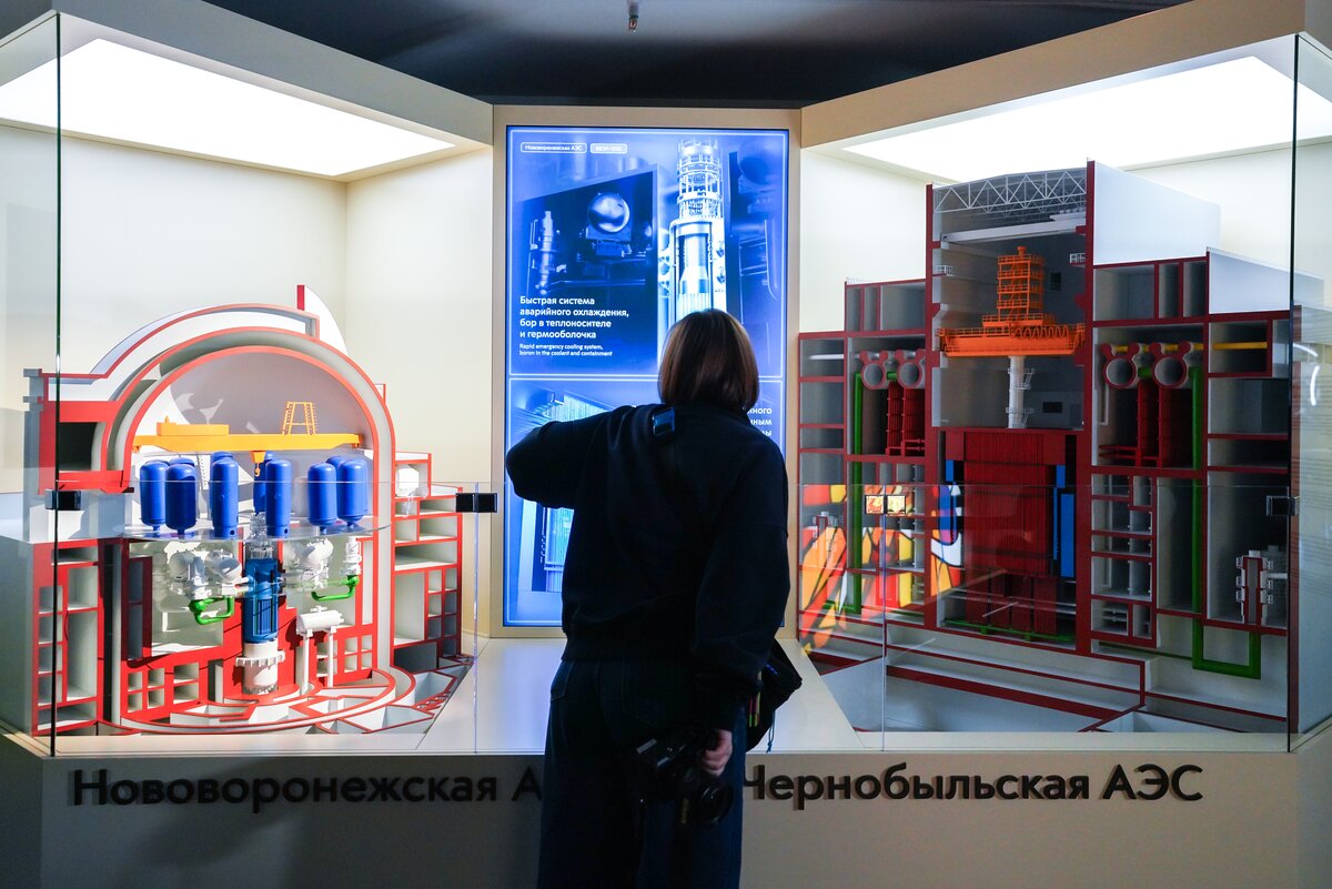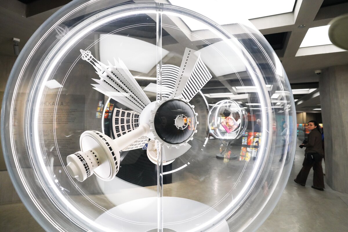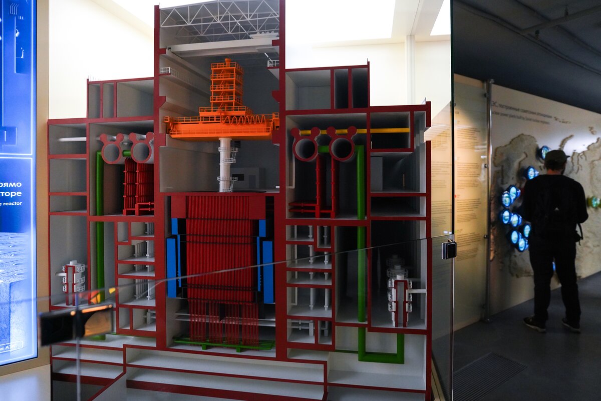 Посетители могут увидеть детальный макет энергоблока с реактором РБМК и сравнить его конструкцию с корпусным реактором типа ВВЭР. В экспозиции также представлен пульт управления первой в мире Обнинской АЭС. На схеме показано, сколько атомных станций было построено во времена СССР и где сейчас возводятся новые российские проекты.