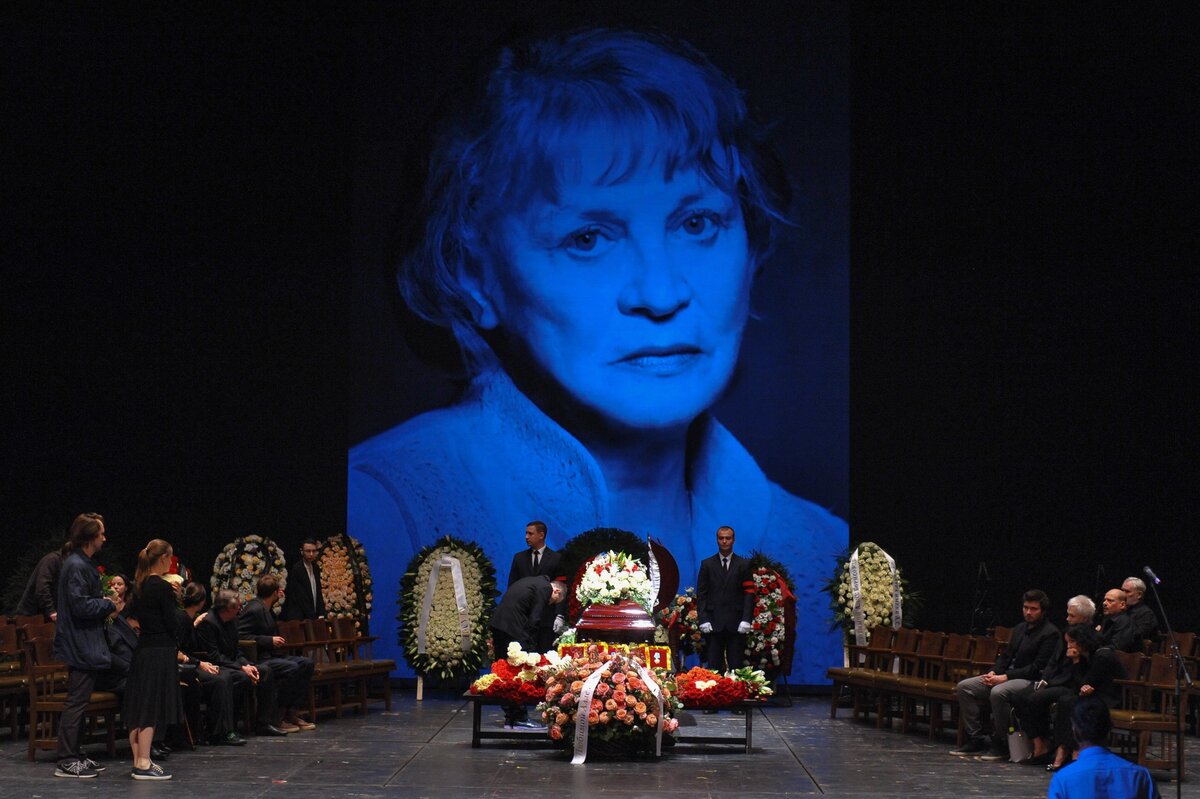27 июня в Московском художественном театре состоялось прощание с народной артисткой РСФСР Аллой Покровской. В театр пришли десятки поклонников, ее коллеги и ученики, общественные и культурные деятели, в том числе Владимир Машков, Владимир Урин, Игорь Золотовицкий, Кирилл Серебренников, Евгений Миронов и другие. Актриса умерла 25 июня на 82 году жизни от сепсиса. 3/19 Фото: АГН "Москва"/Авилов АлександрФото: АГН "Москва"/Авилов Александр