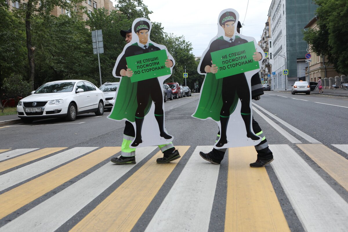 27 июня на двух аварийно опасных переходах установили предупреждающие фигуры для пешеходов с надписью: "Не спеши! Посмотри по сторонам!". Фигуры должны привлечь внимание пешеходов к собственной безопасности. Спустя несколько месяцев их планируют переставить и на другие улицы. 15/19 Фото: АГН "Москва"/Никеричев АндрейФото: АГН "Москва"/Никеричев Андрей