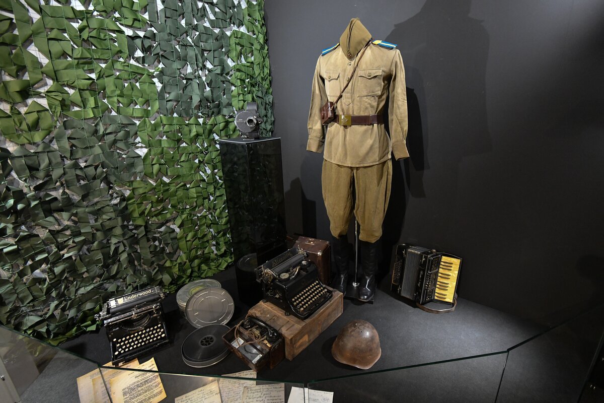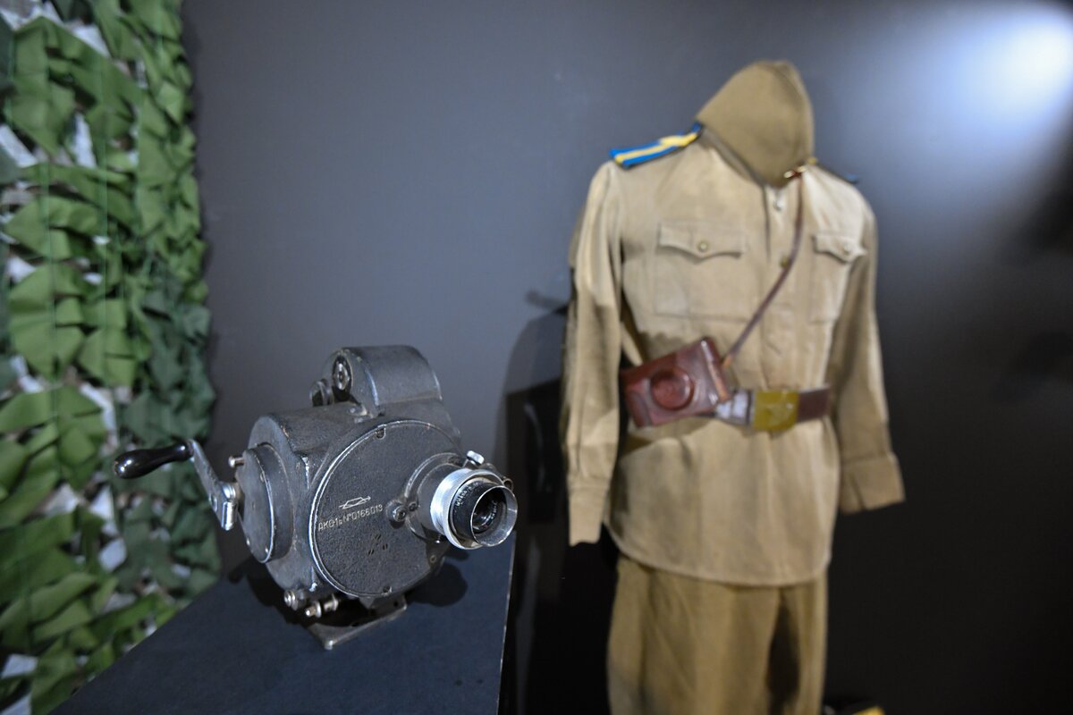 В центральной части выставки представили инсталляцию, отражающую фронтовой быт и работу военных кинооператоров и корреспондентов. Здесь посетители смогут увидеть фотоаппарат "ФЭД – 1", кинокамеру и печатные машинки Underwood и Rheinita 1930–1940-х годов, монтажные листы, полевой телефон и многое другое.