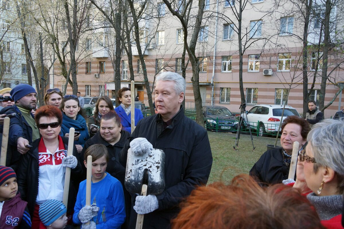 Мэр МосквыСергей Собянин принял участие в акции по посадке деревьев