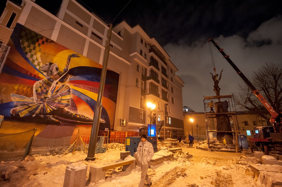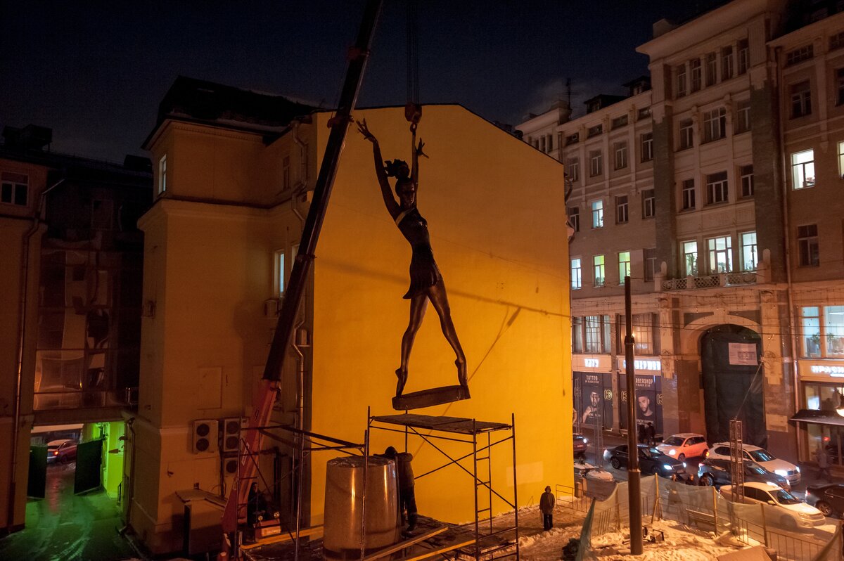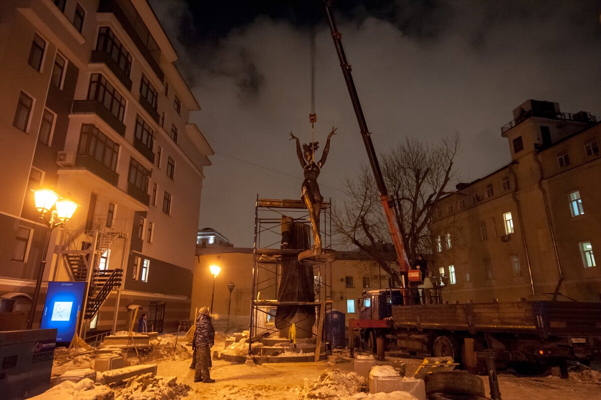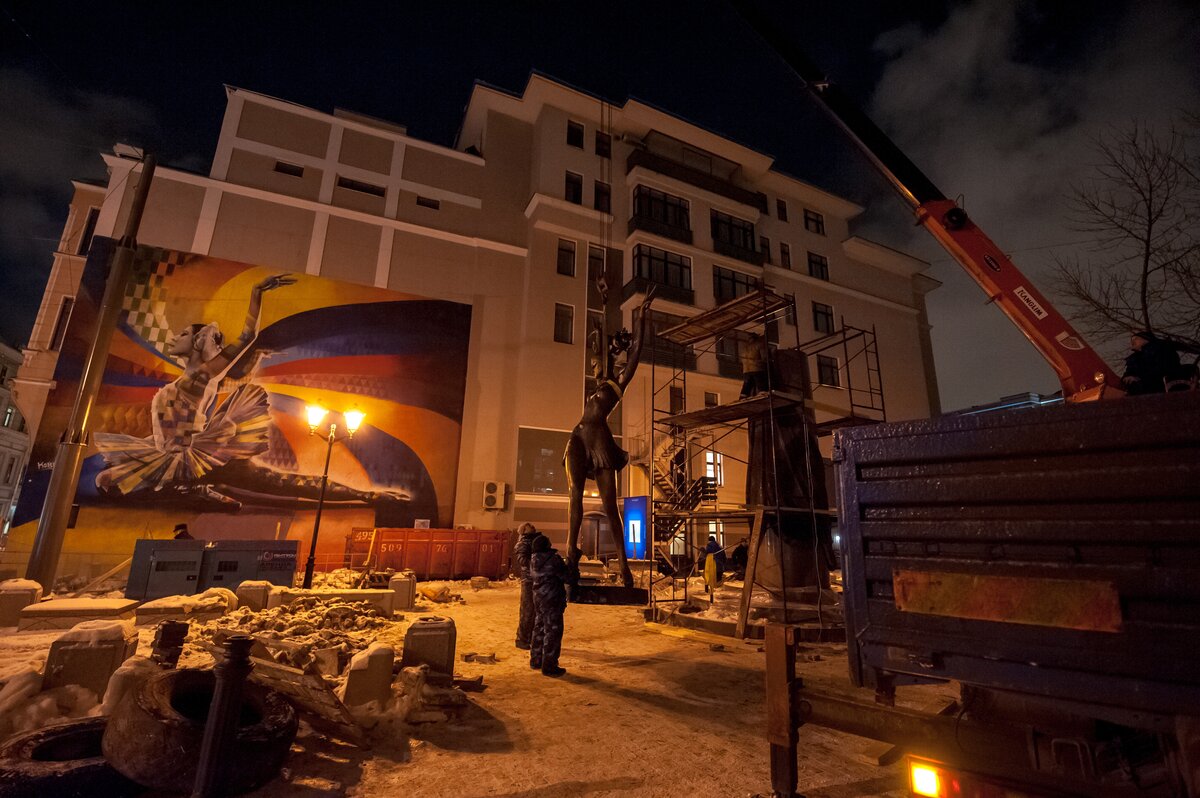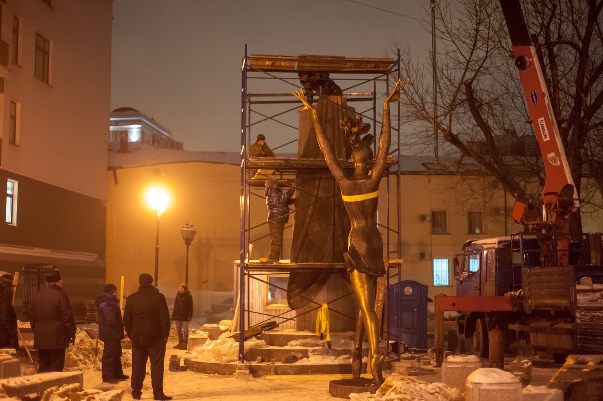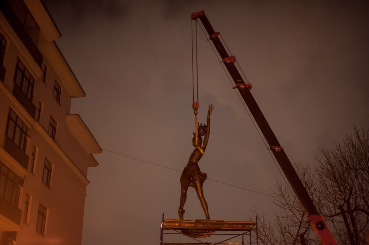 ОбществоКак устанавливают памятник Майе Плисецкой. Фоторепортаж
