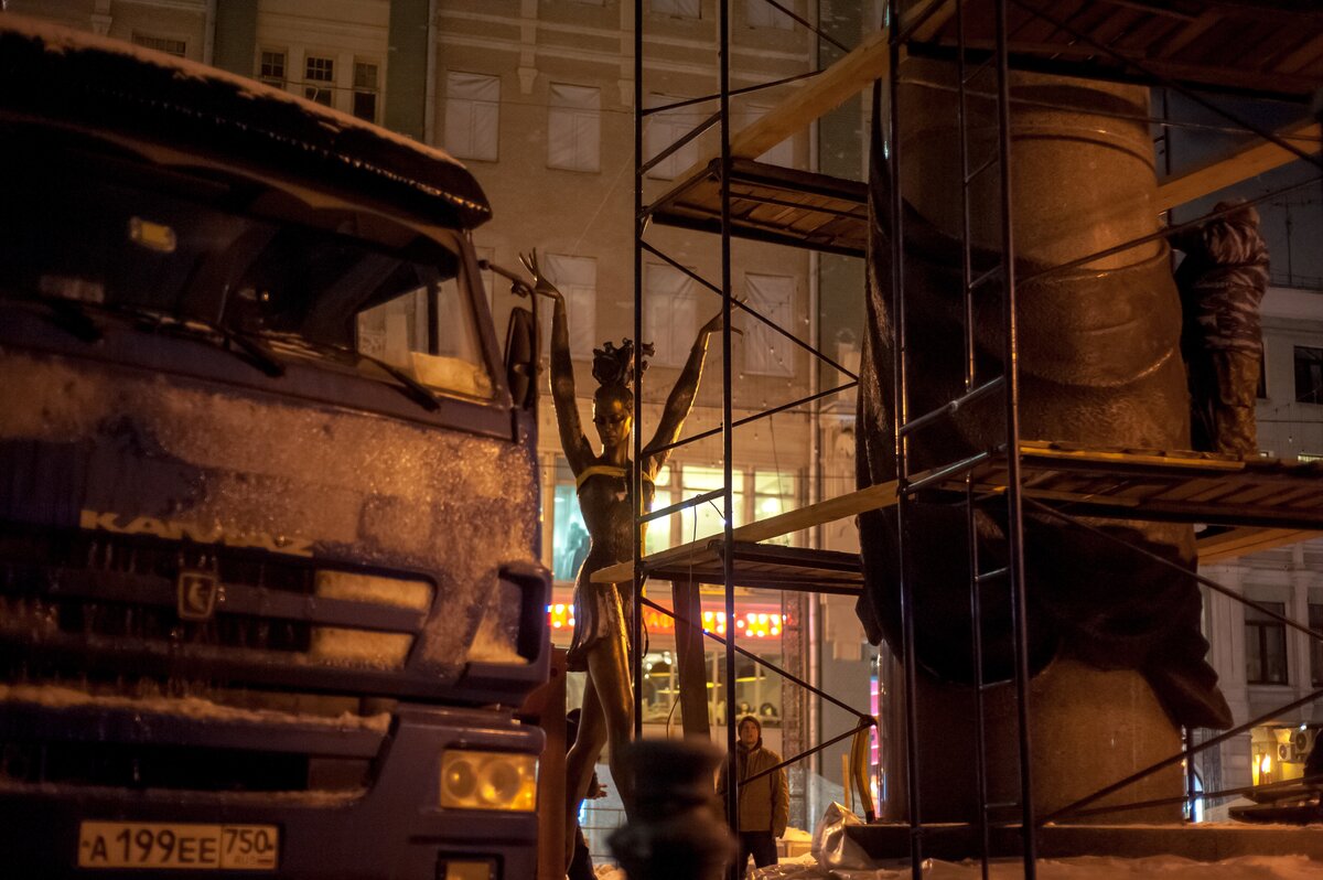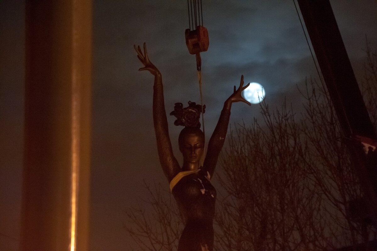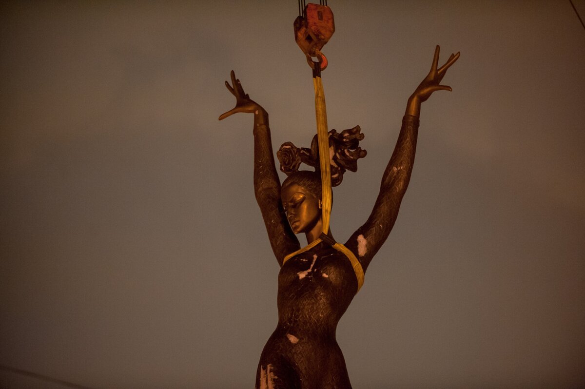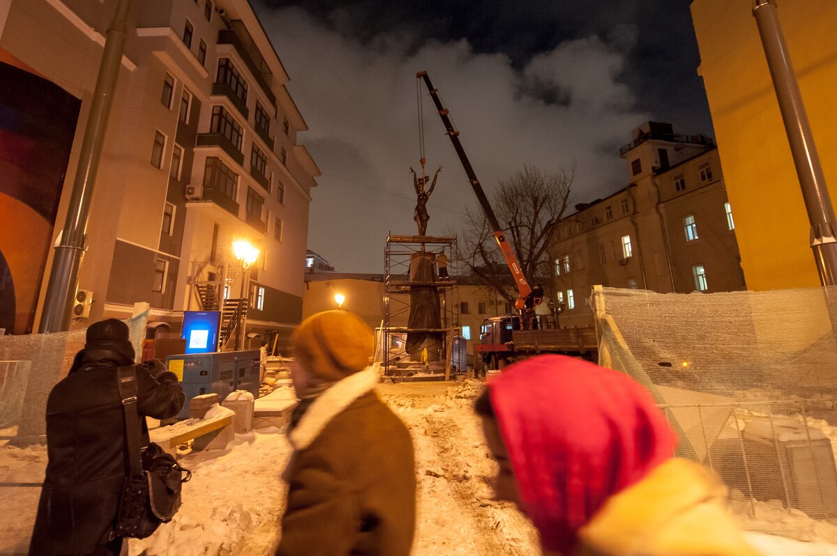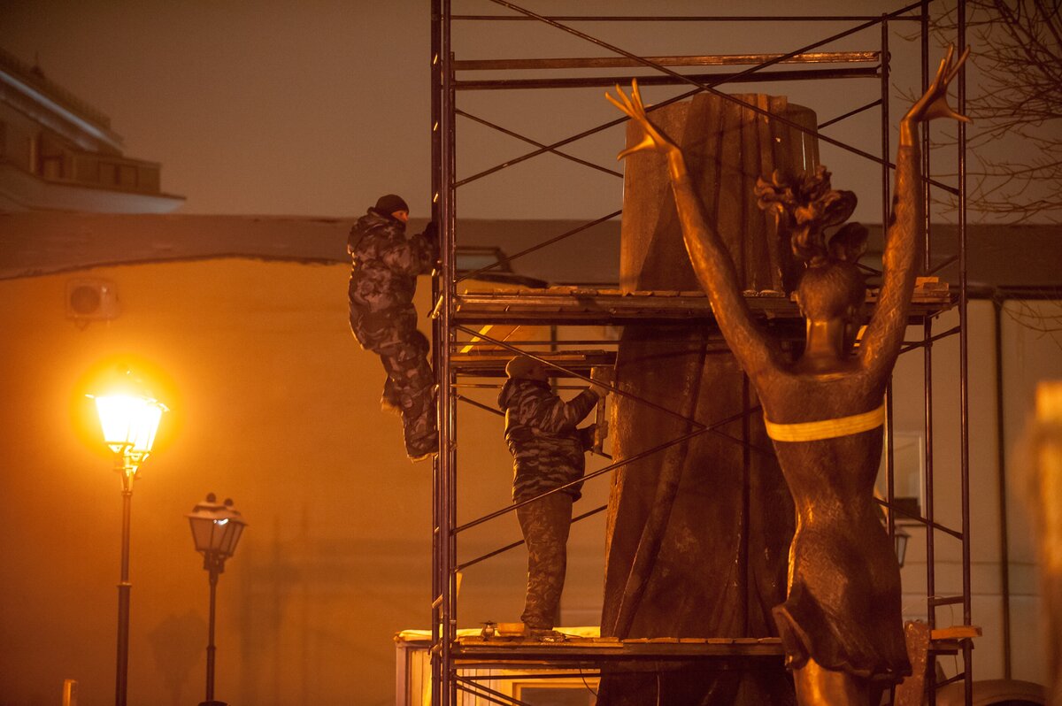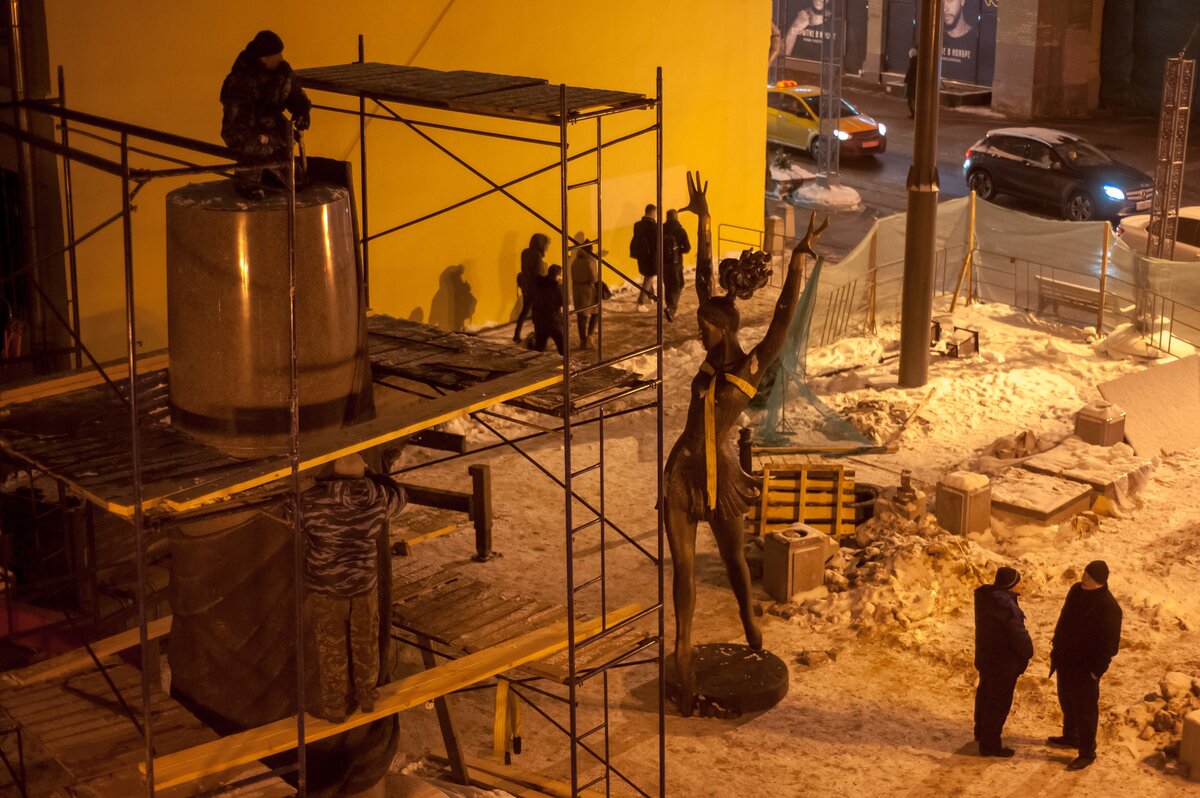 ОбществоКак устанавливают памятник Майе Плисецкой. Фоторепортаж