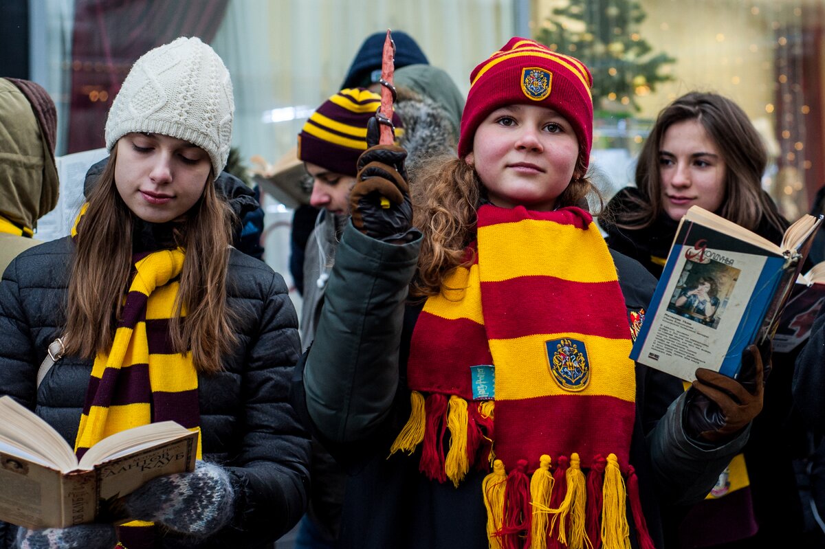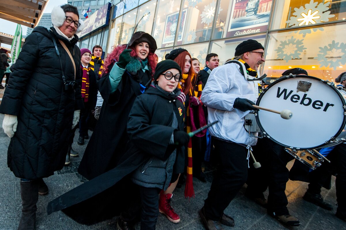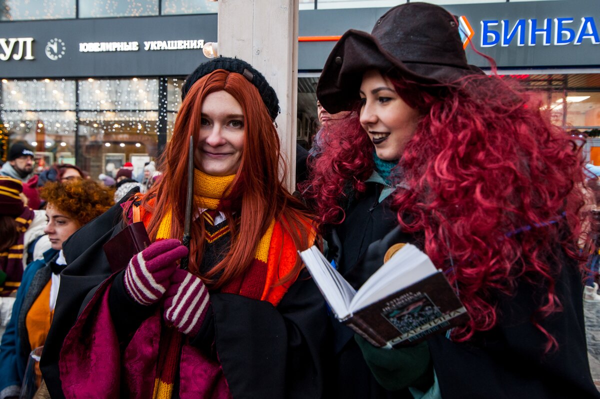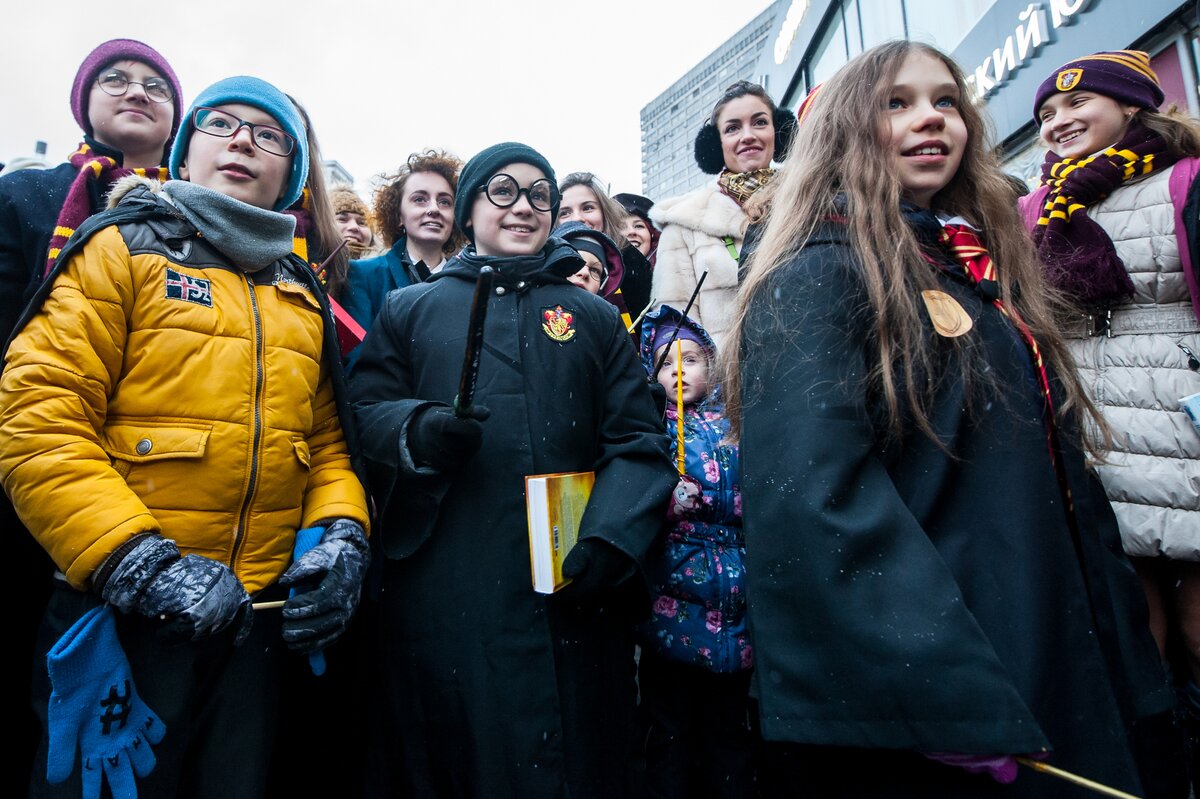 На Новом Арбате в рамках книжной ярмарки "Букмаркет" 11 декабря прошел масштабный Поттер-парад. Таким образом московские поклонники волшебного мира Хогвартса отметили выход восьмой части саги о волшебниках.