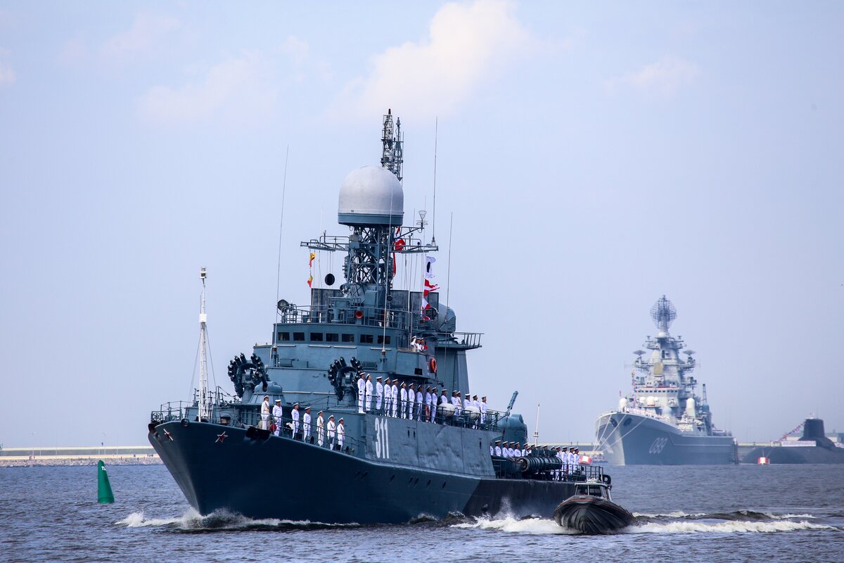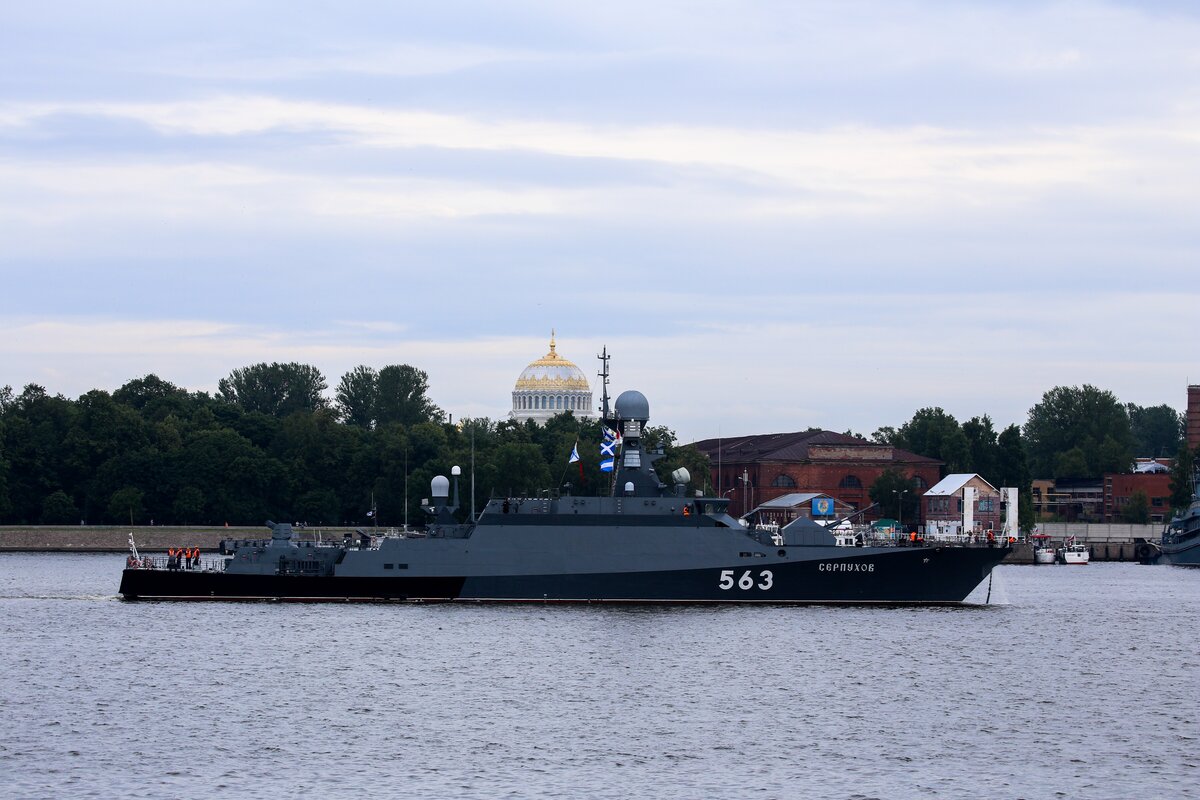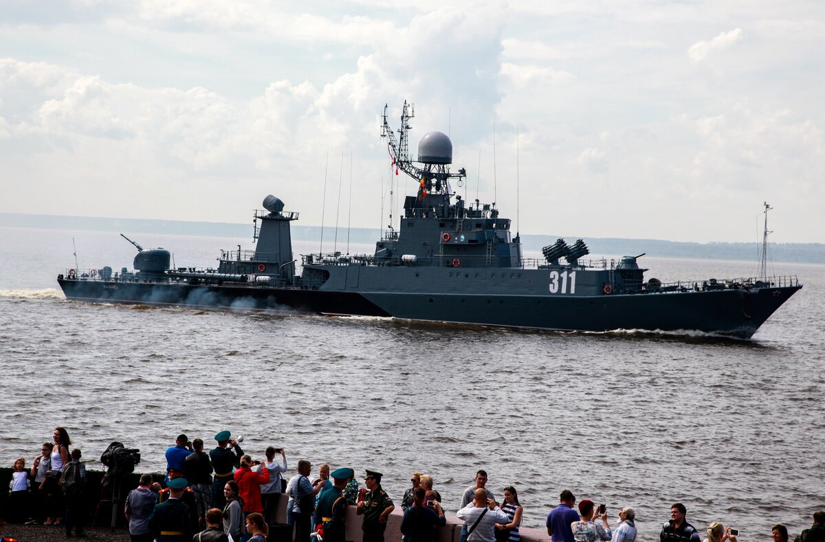 Репетиция парада в честь Дня военно-морского флота России состоялась 28 июля в Кронштадте. Боевые корабли ВМФ прошли парадным строем по корабельному фарватеру.