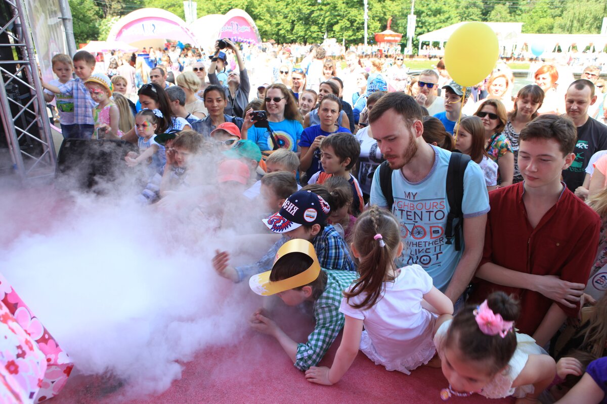 В городе Пломбирске, который на своей территории построил "Золотой стандарт", для детей работали батуты, прошло шоу из самых больших мыльных пузырей, а все желающие смогли воспользоваться аквагримом.
