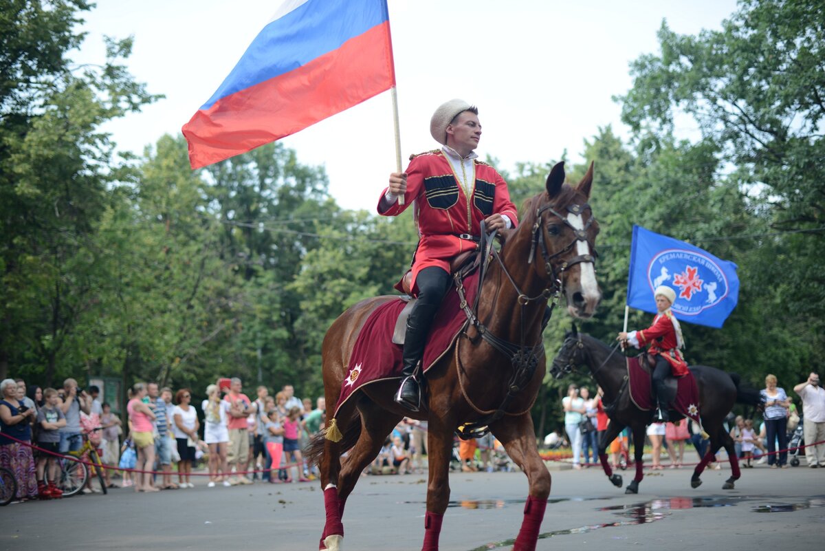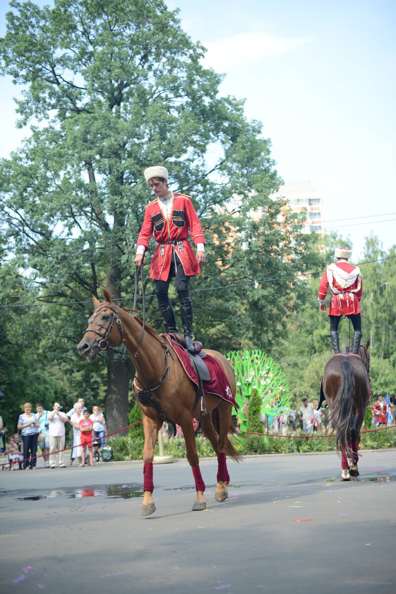 6 июля в Измайловском и Перовском парках состоялось выступления всадников команды Кремлевской школы верховой езды. Жителям Москвы представилась уникальная возможность увидеть программу по джигитовке "Традиции России".