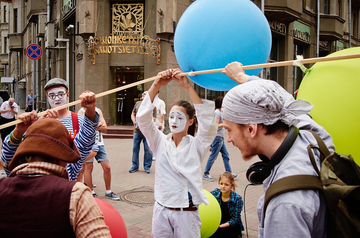 В Москве в рамках социально-культурного проекта "Караван фестивалей уличных театров мира" прошел перформанс под названием "Голос в знак мира на Земле". До прибытия в столицу "Дети Улиц" побывали в Республике Беларусь и в Санкт-Петербурге.