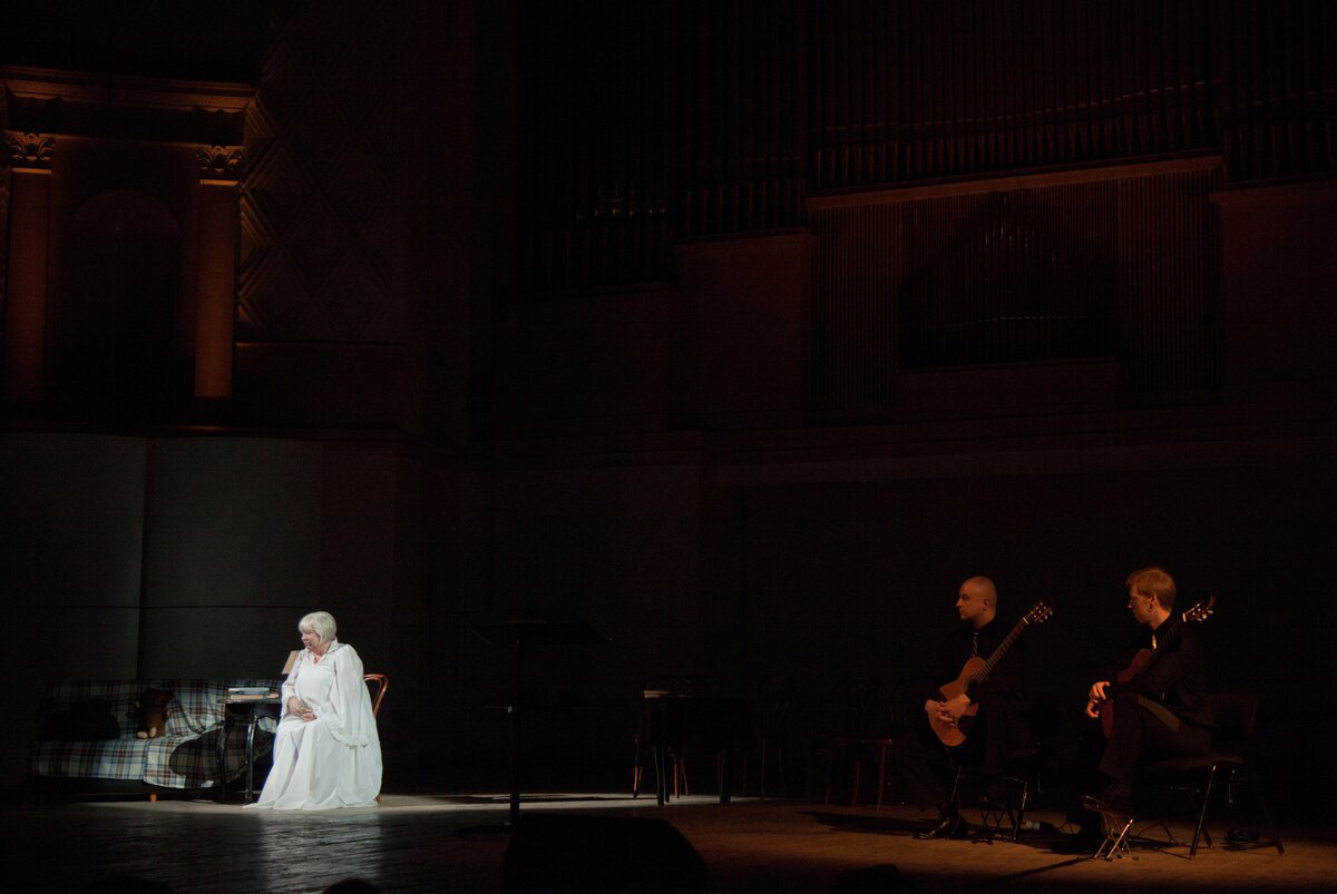 Актриса Светлана Крючкова, недавно отметившая юбилей в Петербурге на сцене Большого драматического театра, решила порадовать и московскую публику. В Концертном зале Чайковского она представила новую литературно-музыкальную программу "Я говорю, держа на сердце руку…".