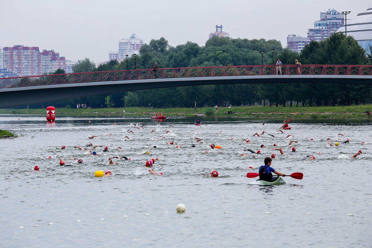 На гребном канале в Крылатском прошла летняя серия "Кубка чемпионов". Это крупнейшие соревнования по плаванию на открытой воде, в которых принимают участие все желающие в возрасте от 16 лет, умеющие плавать и имеющие медицинский допуск к участию. Состоялись заплывы "Классик" на 1862 метра и "Ультра" от 3 до 10 километров.