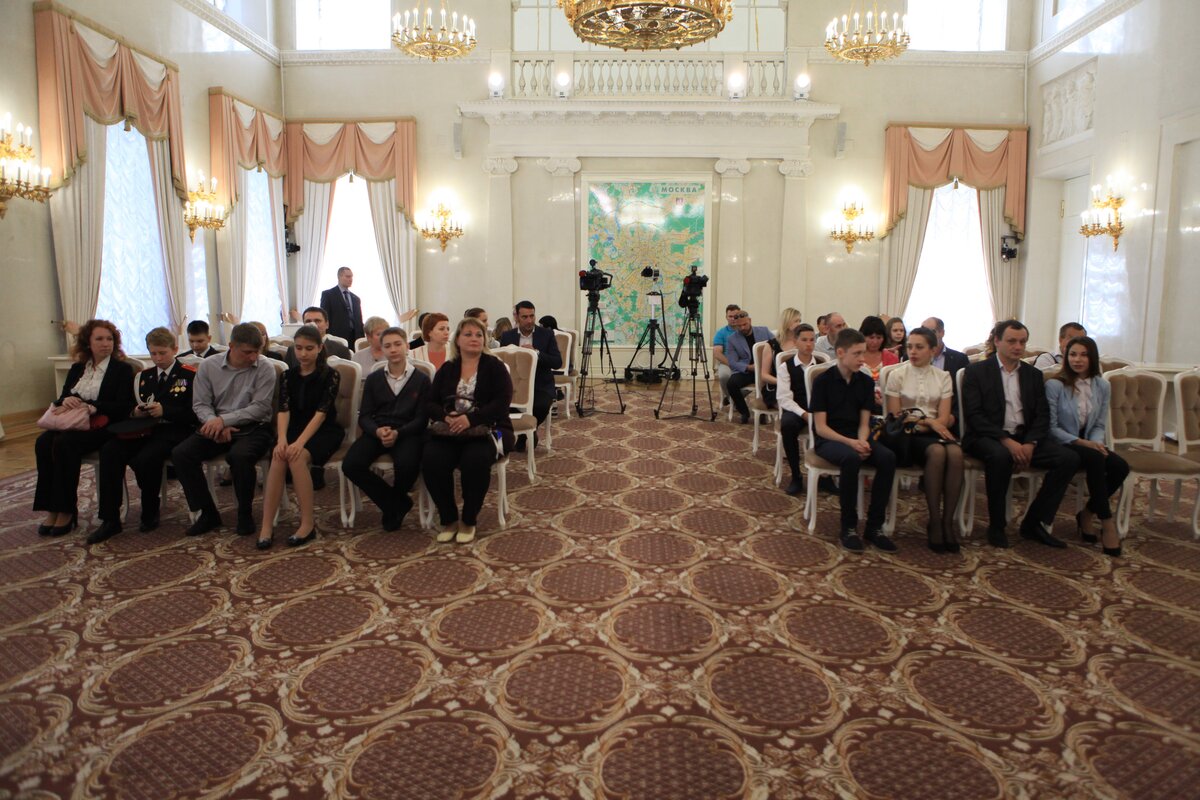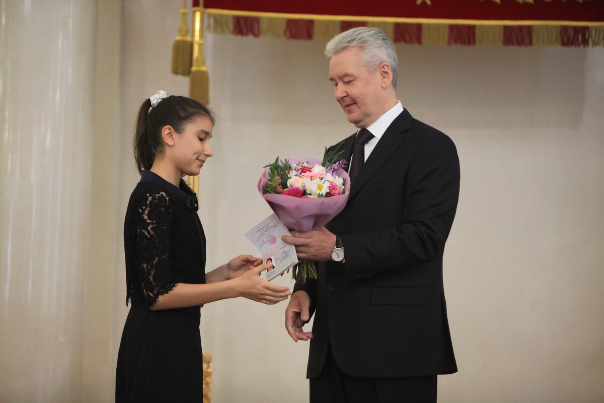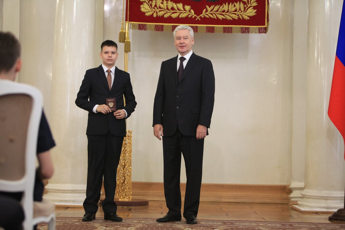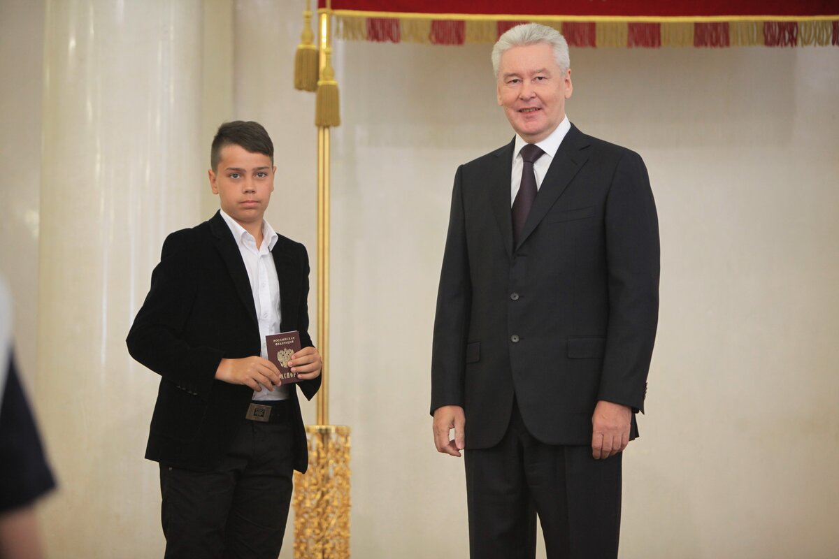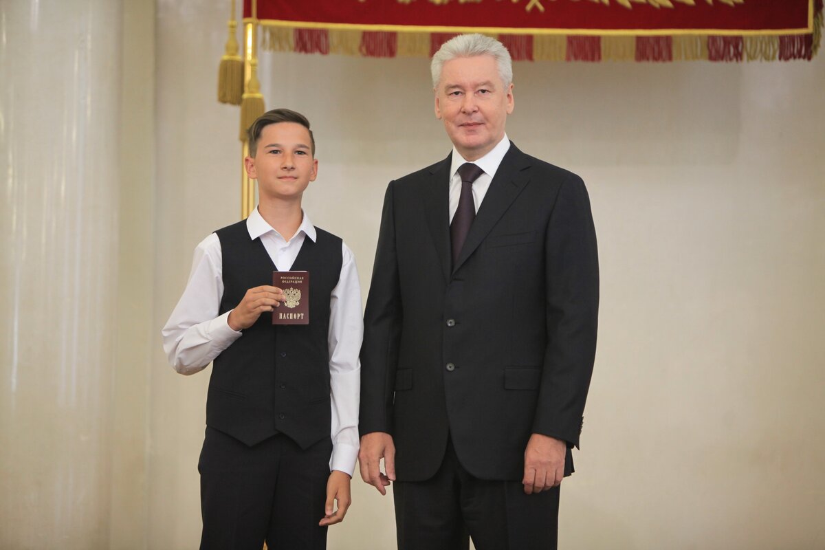 Сергей Собянин вручил паспорта москвичам, достигшим 14 лет. Торжественная церемония вручения паспортов состоялась в Белом зале мэрии Москвы. Так, от мэра города документы получили 11 молодых людей
