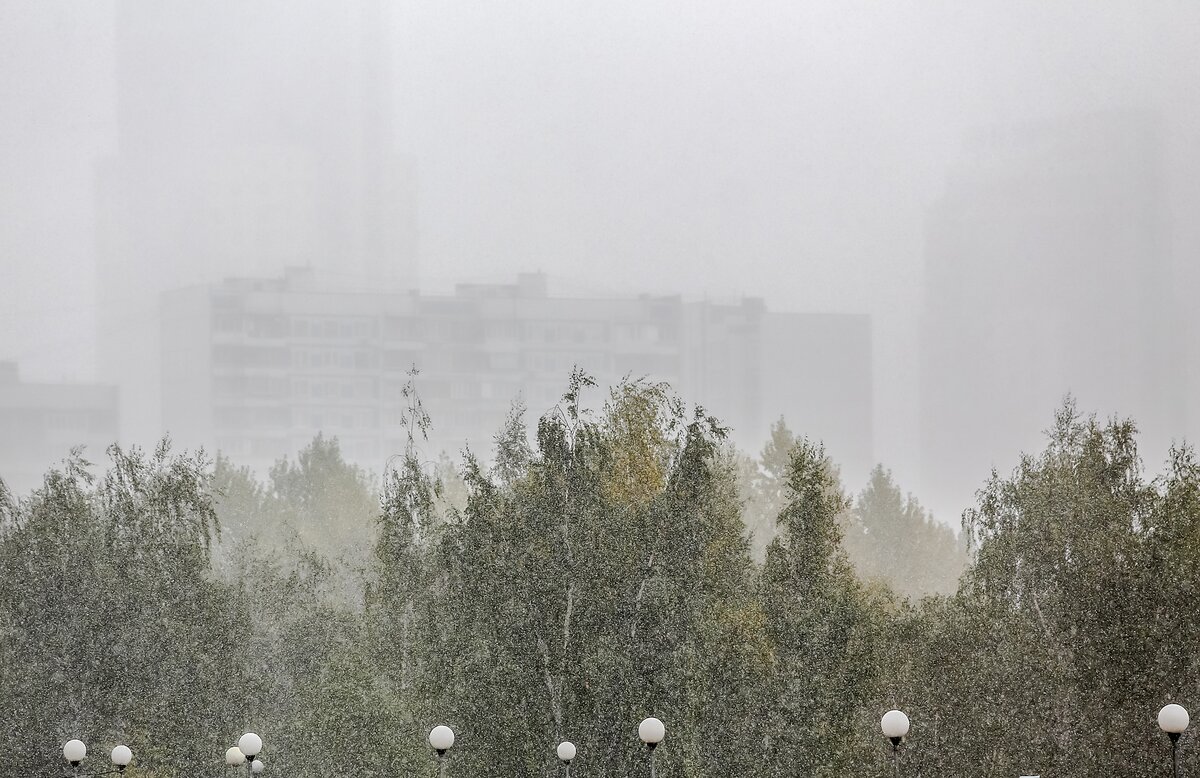 В столице 7 октября выпал первый снег, укрыв белым покрывалом траву и листья деревьев, здания и машины.