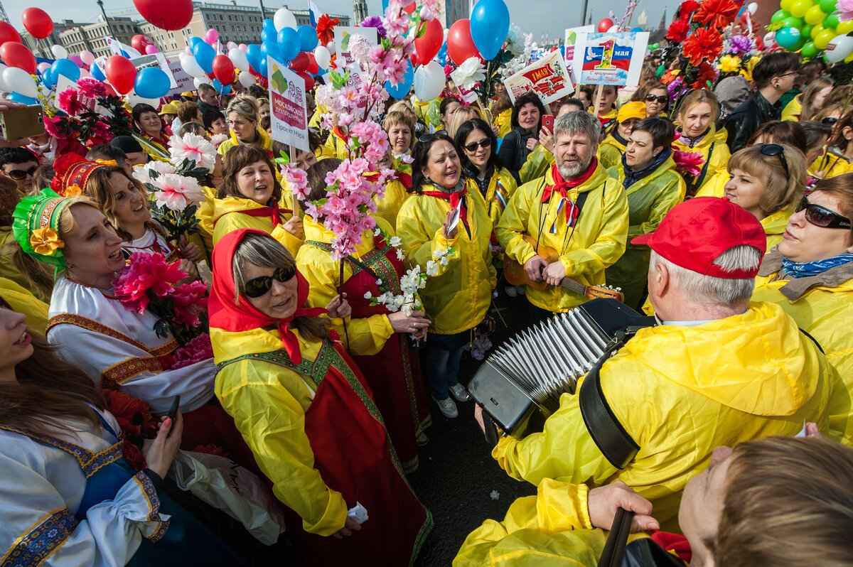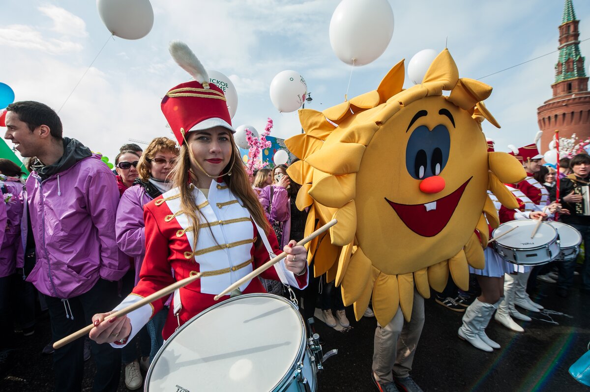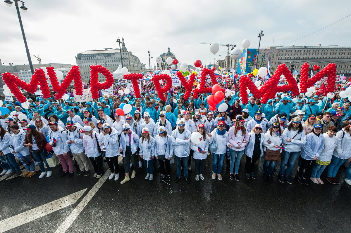 В первомайских мероприятиях в столице поучаствовали около 1,5 миллиона человек. 2/15 Первомайское шествие в МосквеПервомайское шествие в Москве