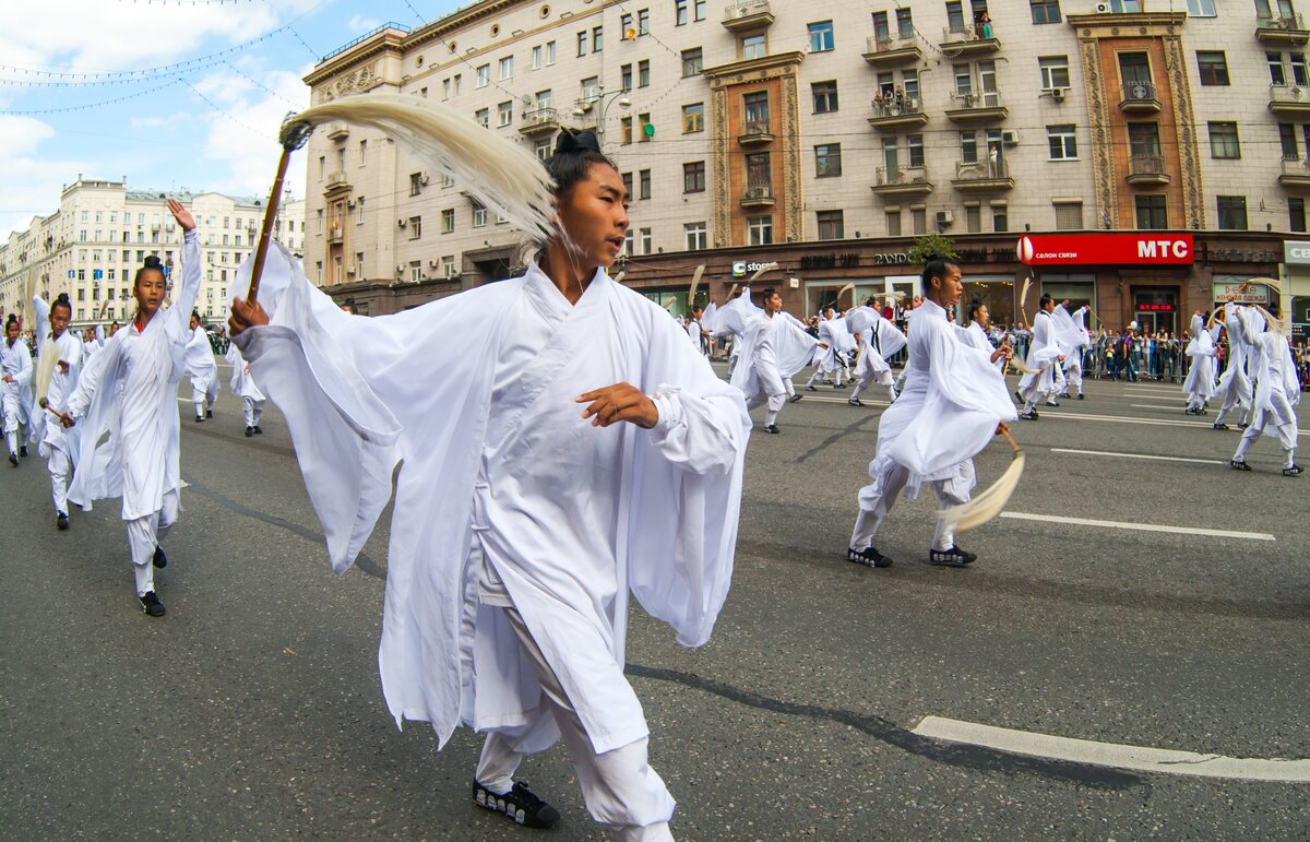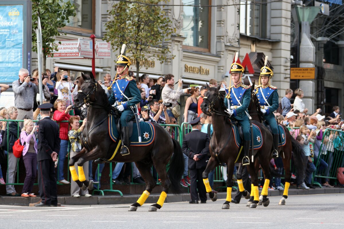 По Тверской улице прошли военные оркестры разных стран. Шествие было приурочено ко Дню города и проходило в рамках фестиваля "Спасская башня".