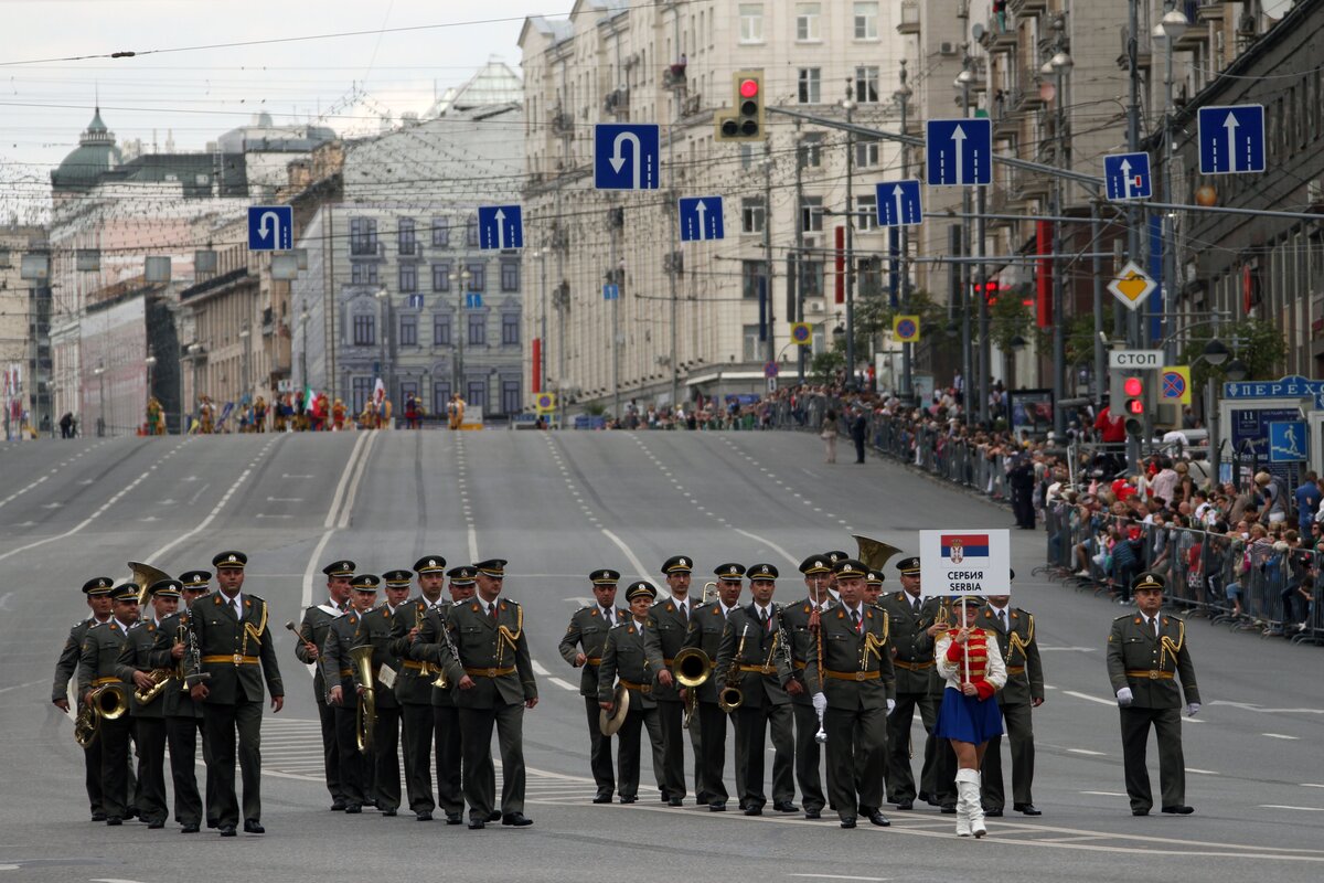 На Тверской состоялось шествие военных оркестров разных стран
