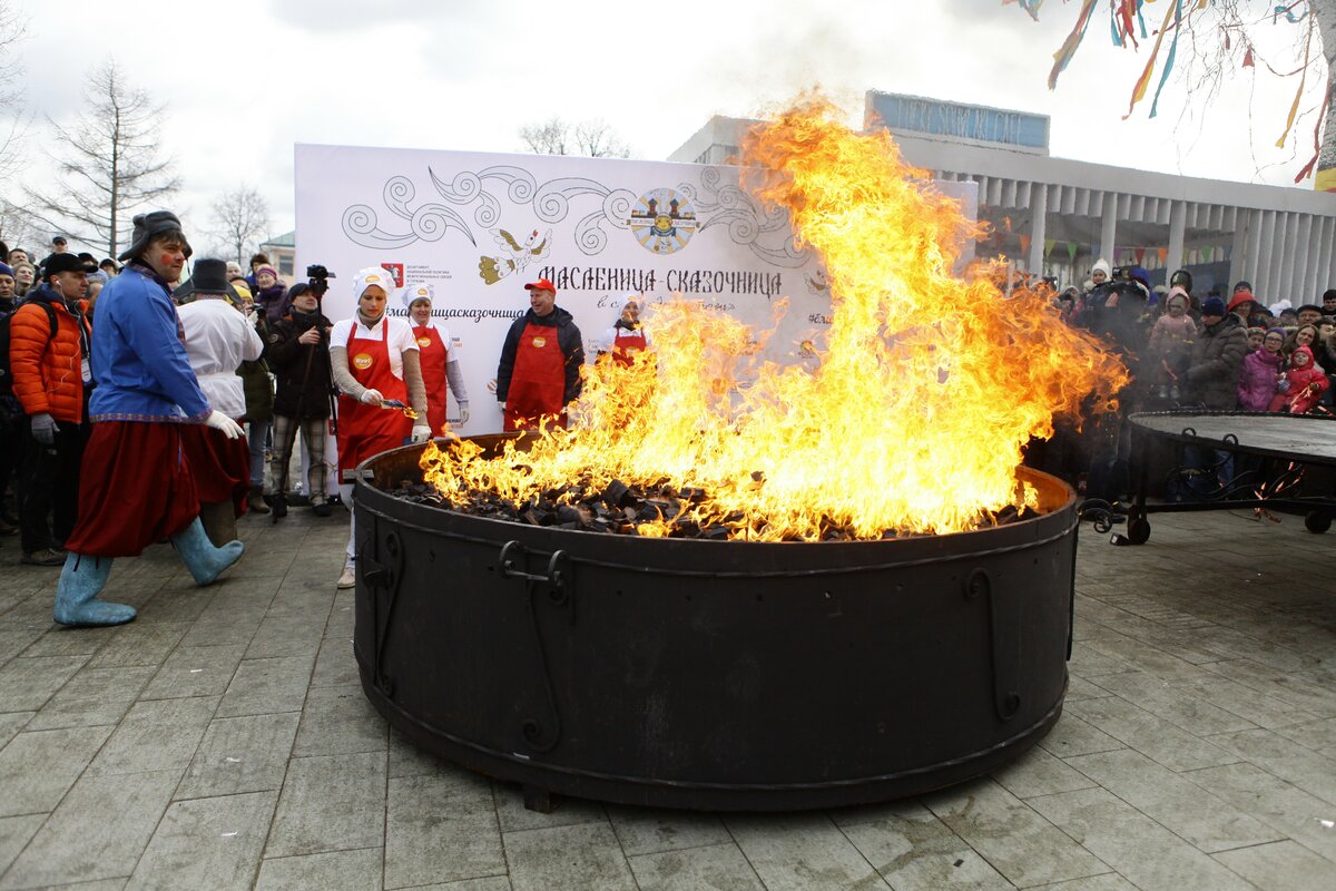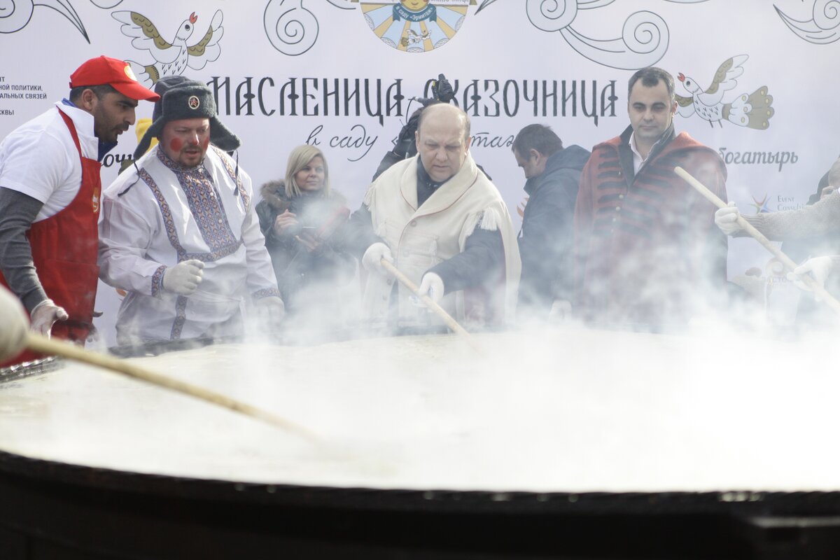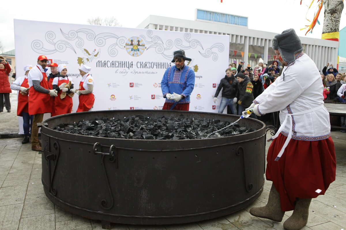 Гигантский блин поджарили в саду "Эрмитаж" в последний день Масленицы 13 марта. На него ушло 60 килограммов теста.