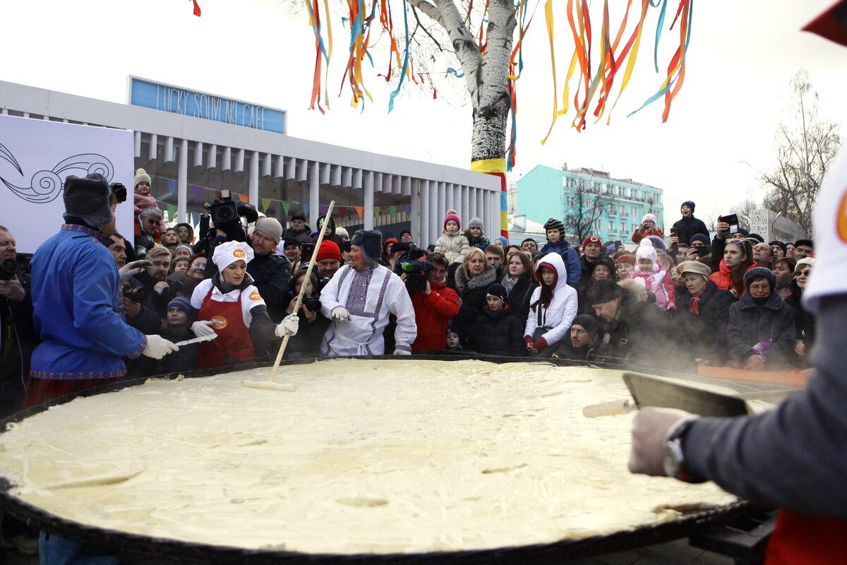 Гигантский блин мог попасть в Книгу рекордов Гиннесса, однако подгорел и развалился. Дожаривать его пришлось уже по частям. Тем не менее все желающие смогли его попробовать.