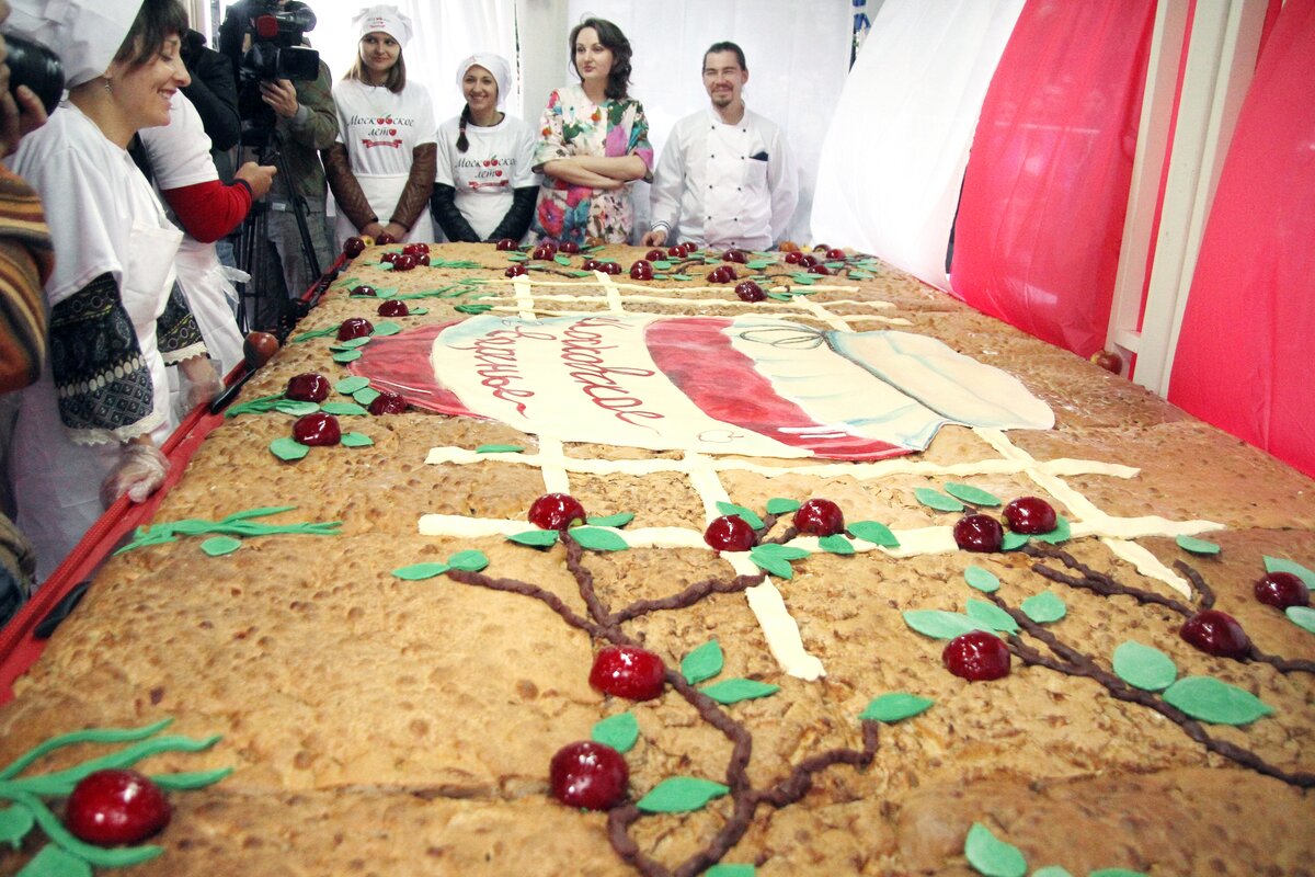 В этот день главным подарком для гостей стала гигантская шарлотка весом более 250 килограммов. Для ее приготовления использовали 100 килограммов муки, 100 килограммов российских яблок, 200 яиц. Шарлотку украсили карамельными яблоками и изображениями деревьев из мастики.