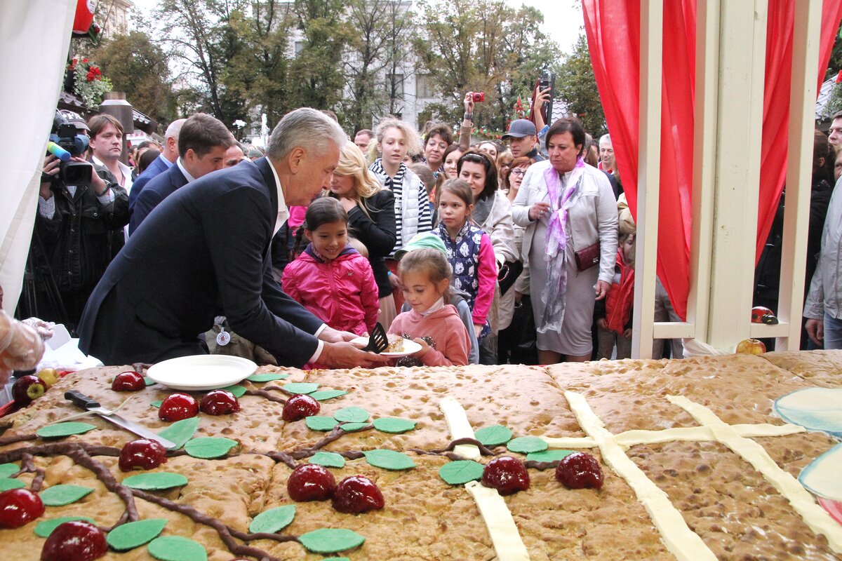 Сергей Собянин посетил площадку фестиваля "Московское лето. Фестиваль варенья" на Тверской площади и поздравил москвичей с Яблочным спасом.