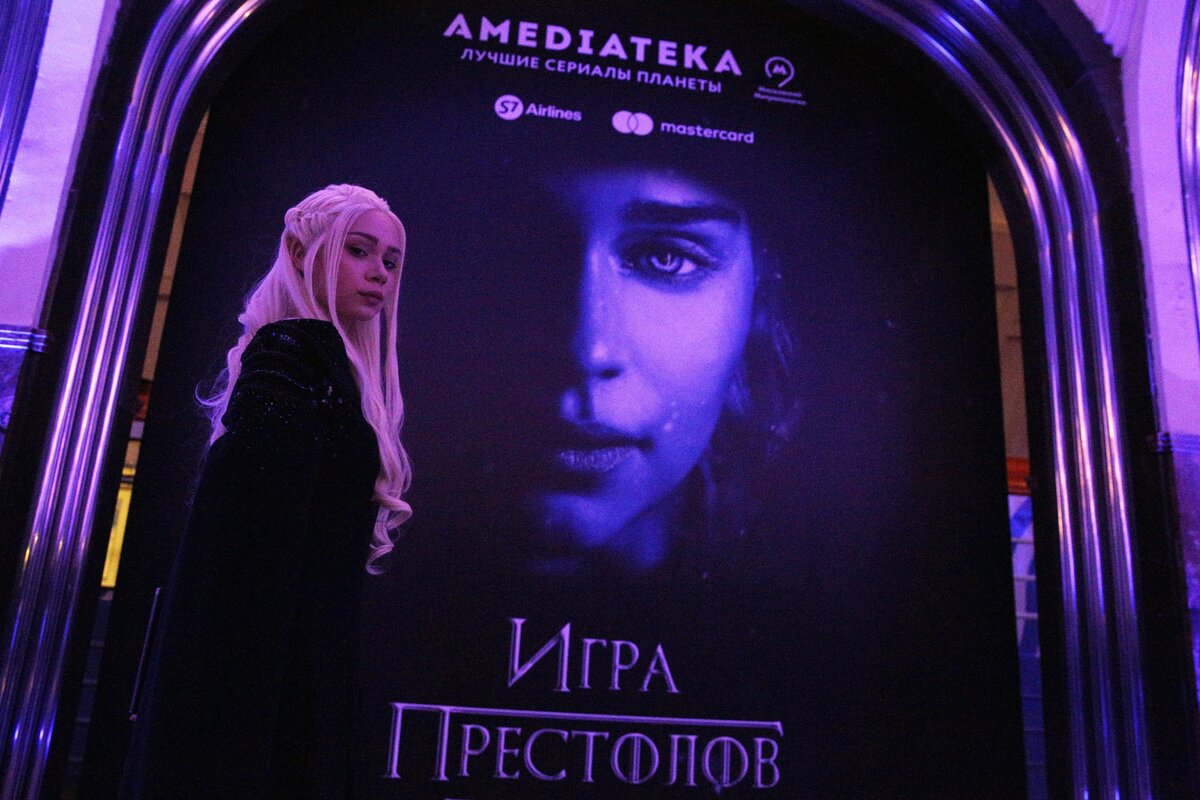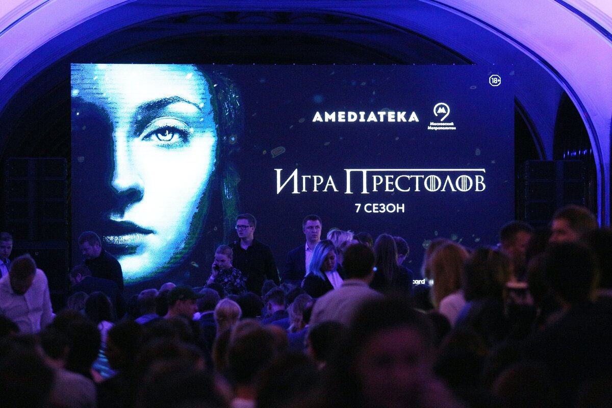 Показ первой серии нового сезона саги "Игра престолов" состоялся в ночь с 17 на 18 июля на одной из станций Московского метрополитена. Впервые в истории премьера сериала прошла под землей.