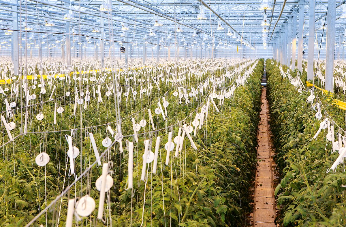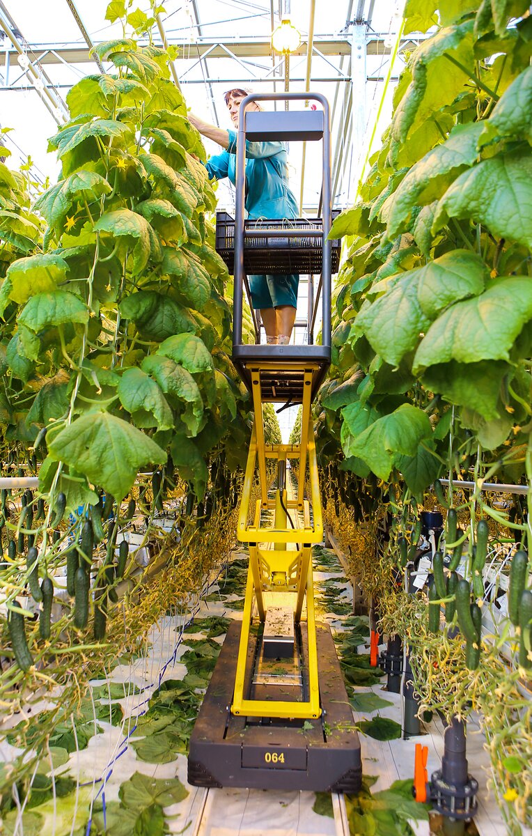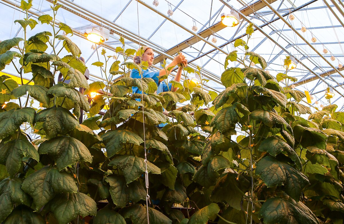 Гигантские теплицы из стекла и металла с треугольными прозрачными крышами раскинулись в 100 километрах от Москвы в поселке под Каширой. Здесь будет крупнейший в Московской области агропромышленный комплекс. Уже сейчас площадь теплиц занимает 21,5 гектара, что сопоставимо с 30 футбольными полями. До конца года запустят еще 30 гектаров. Только за один день здесь собирают 50-70 тонн огурцов и около 20 тонн помидоров. В этот же день овощи "с куста" окажутся на прилавках торговых сетей и розничных магазинов столицы, куда поставляется 90 процентов урожая. Продукцию "Агрокультура Групп" можно встретить в "Перекрестке", "Пятерочке", "Дикси", "О'Кей" и других магазинах.